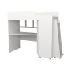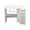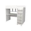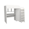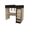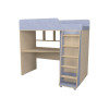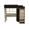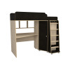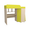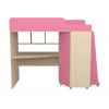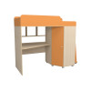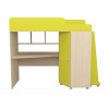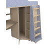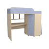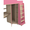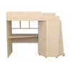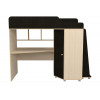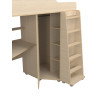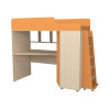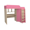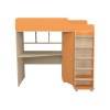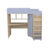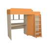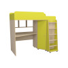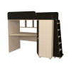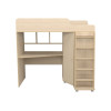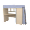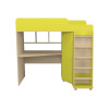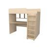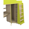 На втором ярусе расположено просторное спальное место, под ним — письменный стол с полками, сбоку — вместительный угловой шкаф. Лестница позволит легко подниматься на второй этаж, ее можно установить спереди или сбоку.