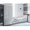 Внутри достаточно места, чтобы развесить повседневные и сезонные вещи, поставить несколько коробок с обувью или игрушками. Оригинальные фасады с фрезеровкой в виде пересекающихся линий делают модель особенно привлекательной.