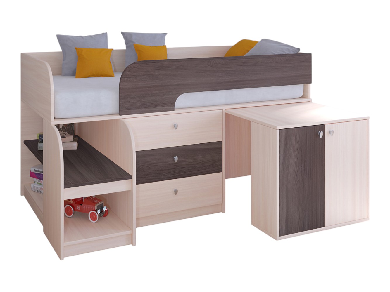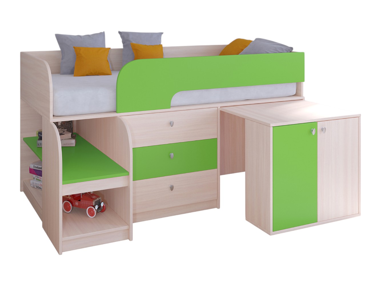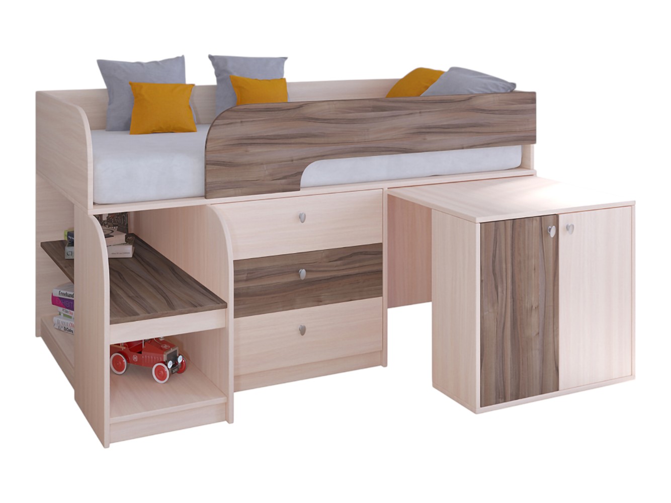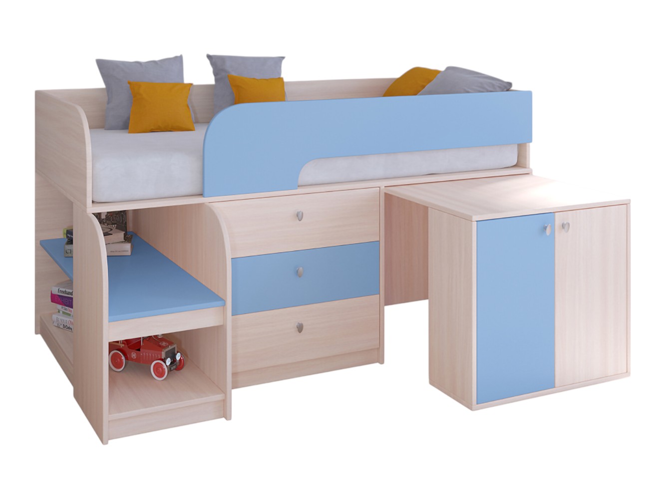 Выдвижной столик-тумба обеспечит удобное рабочее место для игр, учебы или творчества.