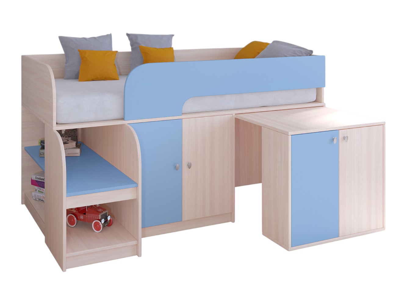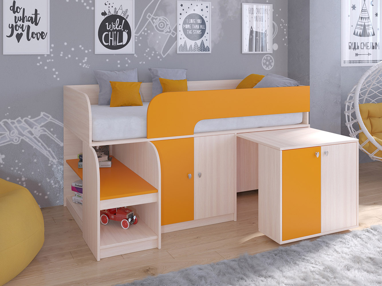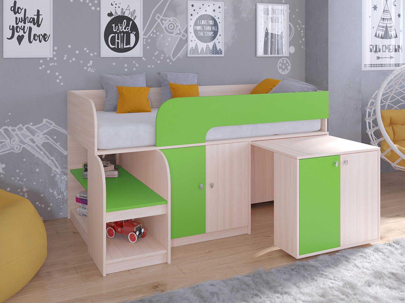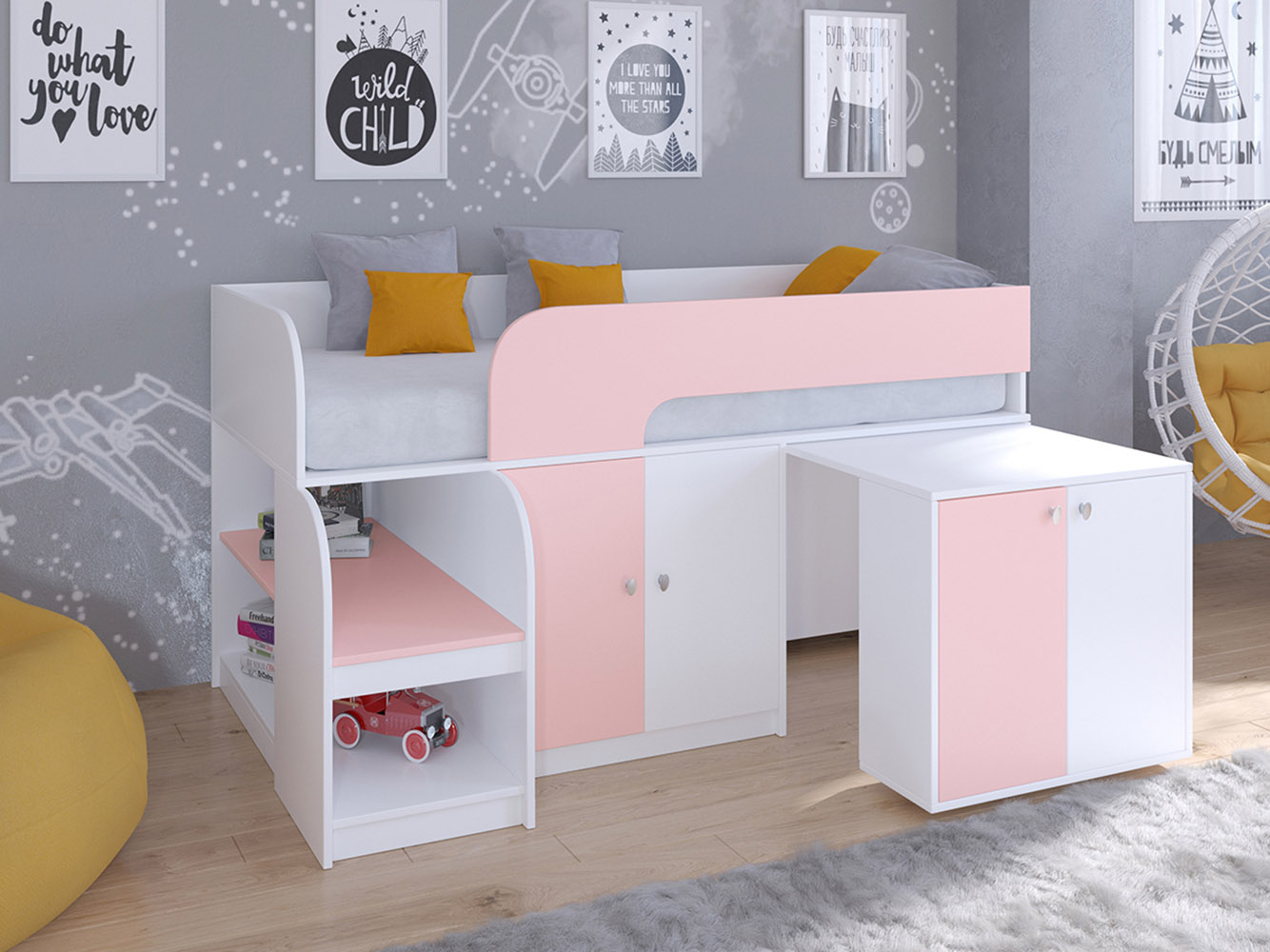 Выдвижной столик-тумба обеспечит удобное рабочее место для игр, учебы или творчества.