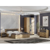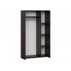 На полках можно хранить вещи в сложенном виде и домашний текстиль, а в секции с нишей — развесить одежду на вешалках, поставить коробки с обувью или небольшой чемодан. Зеркальное полотно по центру шкафа удобно использовать во время переодевания.