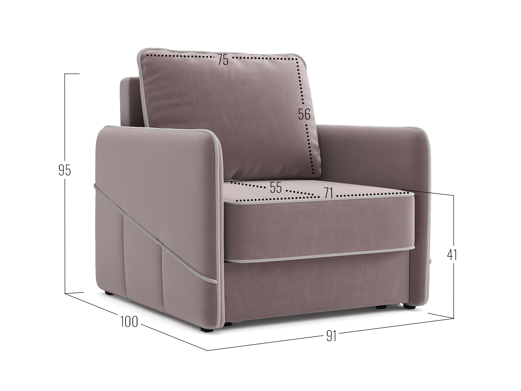 Посадочное место без подушки (ШхГ): 71 х 77 см.