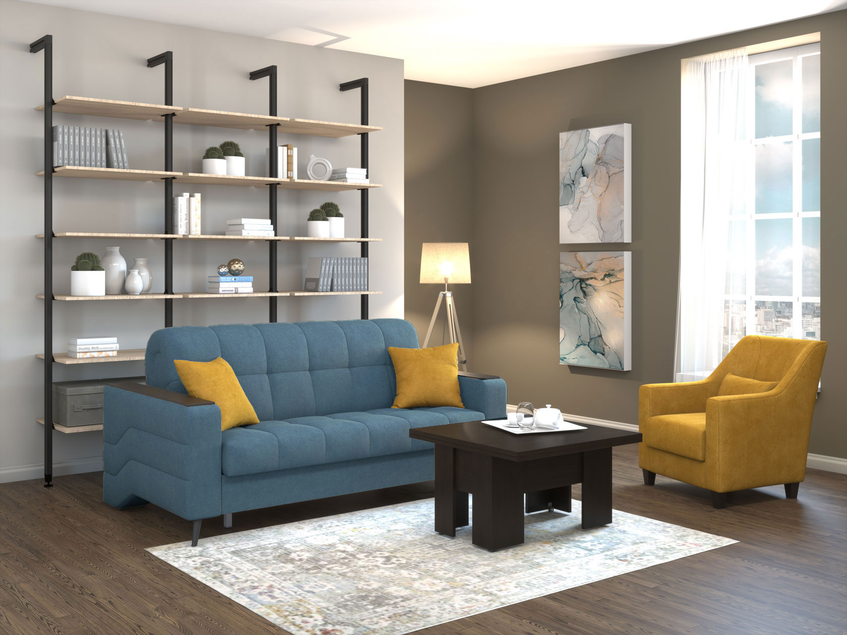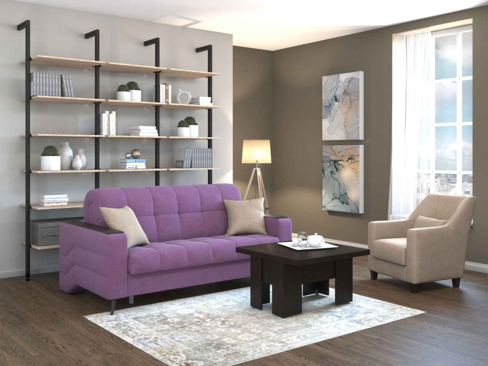 Надежный механизм идеально подходит для ежедневной эксплуатации: трансформируется бесшумно и не портит напольное покрытие. Съемный чехол обеспечивает идеальное натяжение ткани и облегчает уход за диваном.