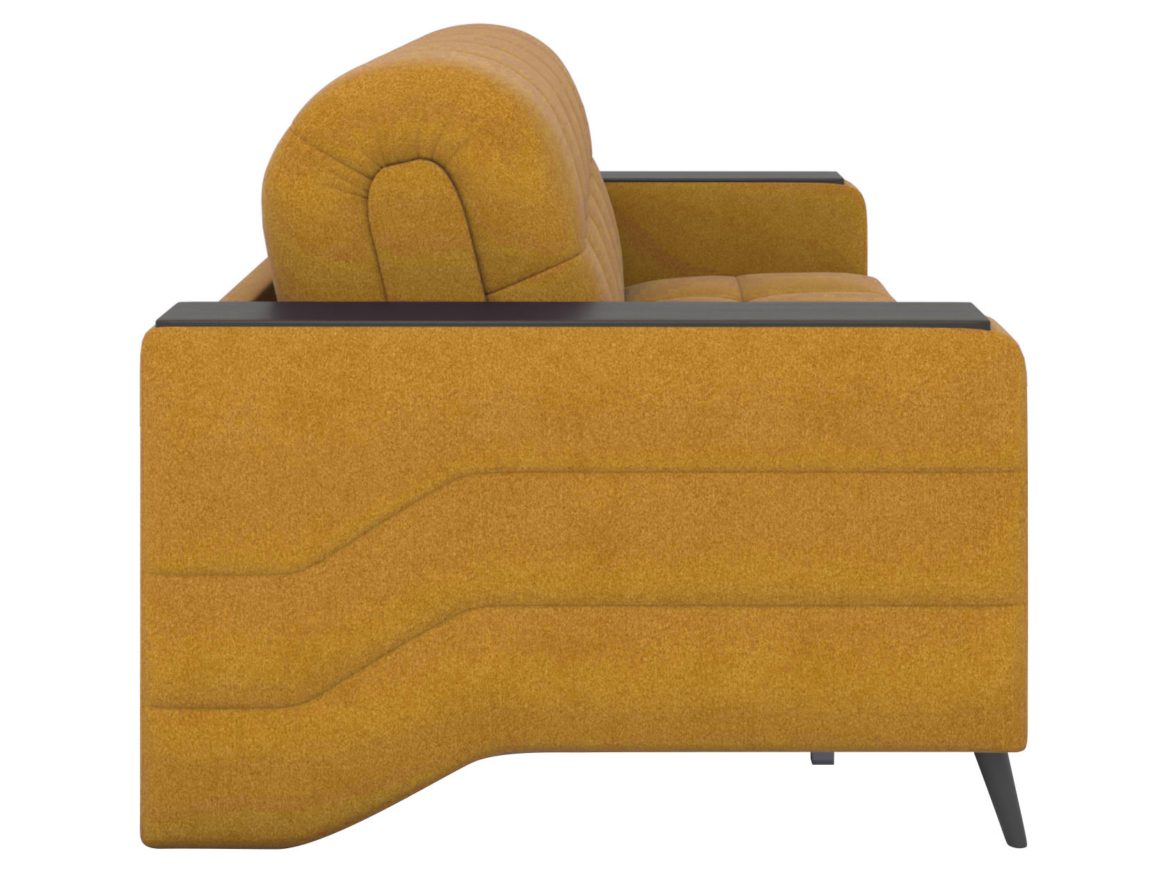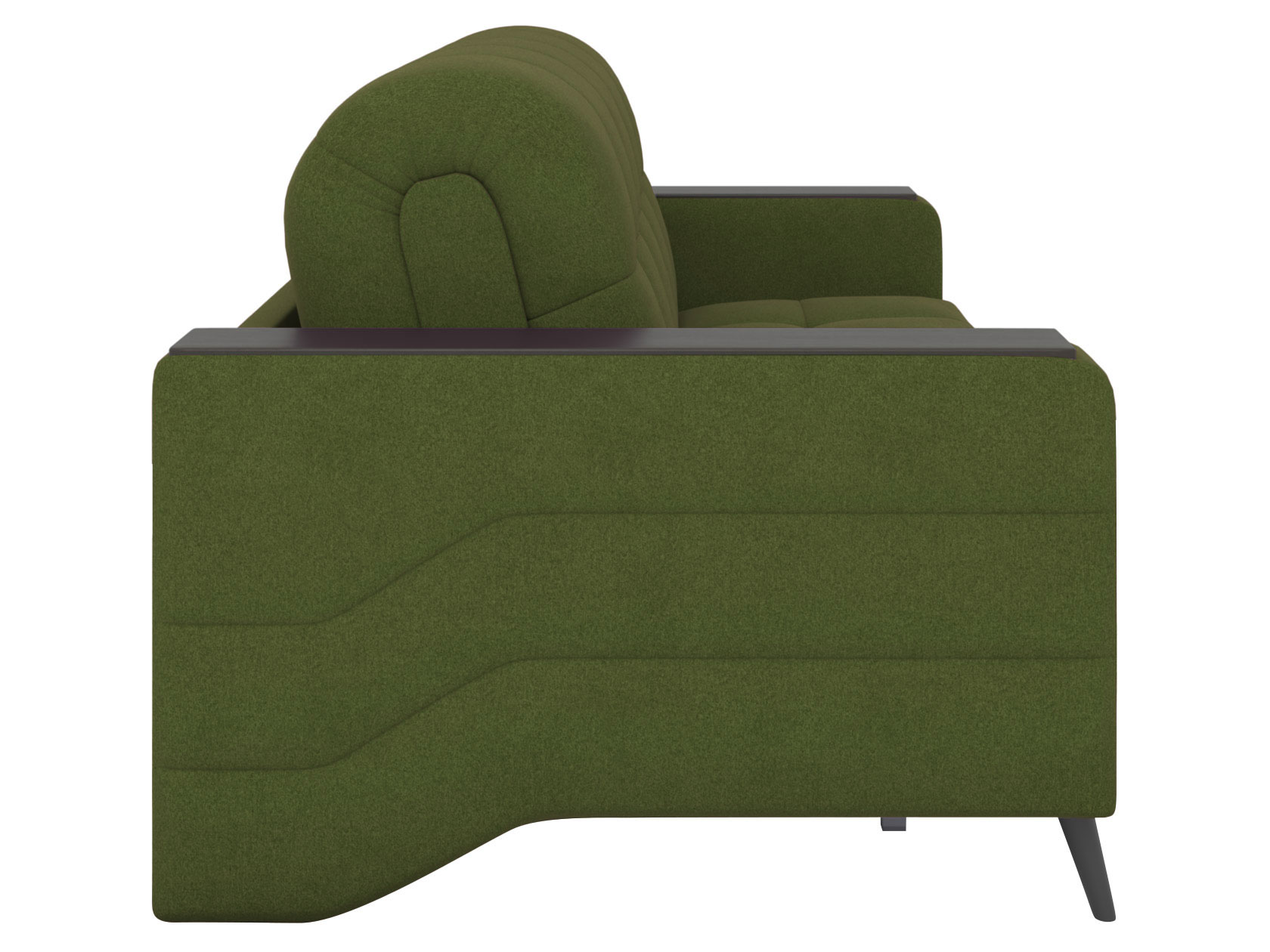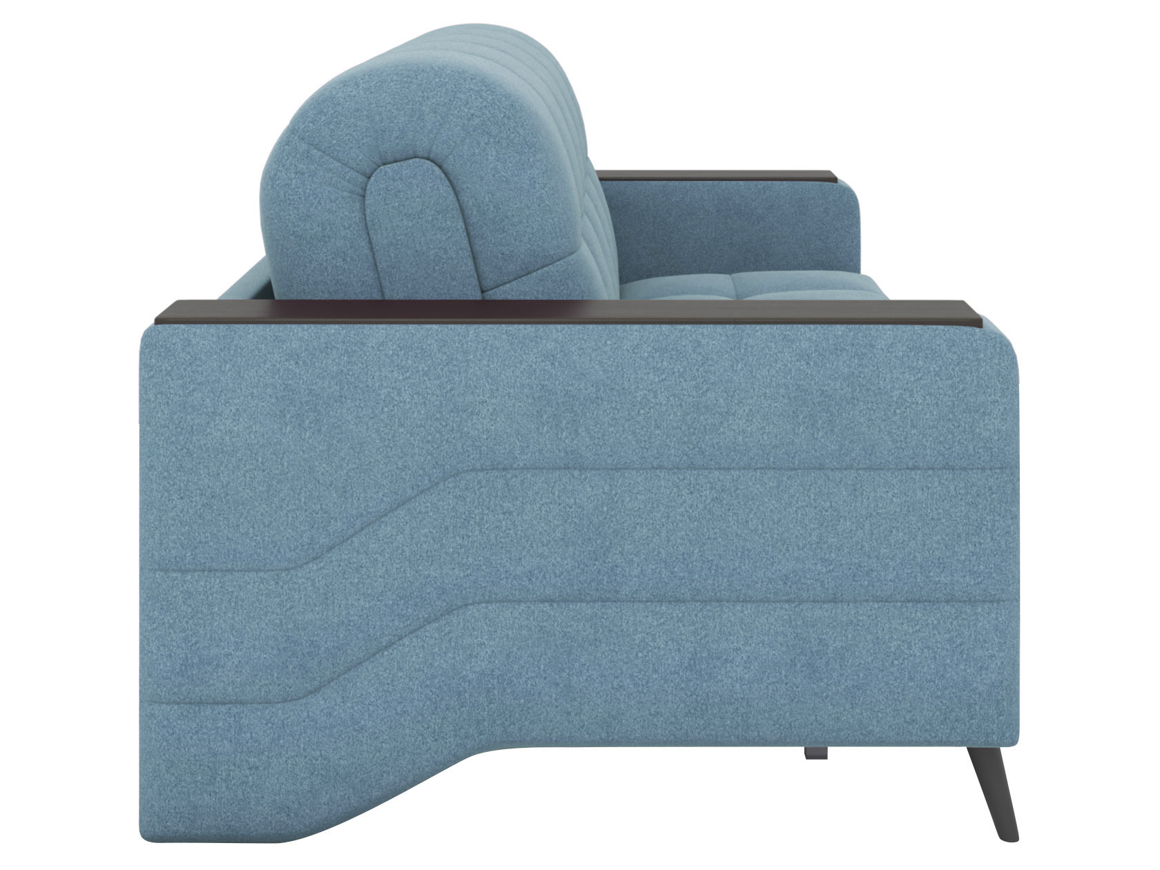 Высокие опоры придают модели визуальную легкость, а плавная геометрия стежки — динамику и индивидуальность. Диван безупречно выглядит со всех сторон, поэтому подходит для зонирования комнаты. Ящики в подлокотниках позволяют хранить под рукой книгу, небольшой плед или наушники с зарядными устройствами.