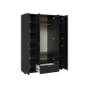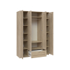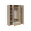 Внутреннее пространство хорошо продумано и функционально организовано. Множество полок, ниша со штангой и выдвижной ящик позволяют расположить предметы гардероба, обувь и домашний текстиль.