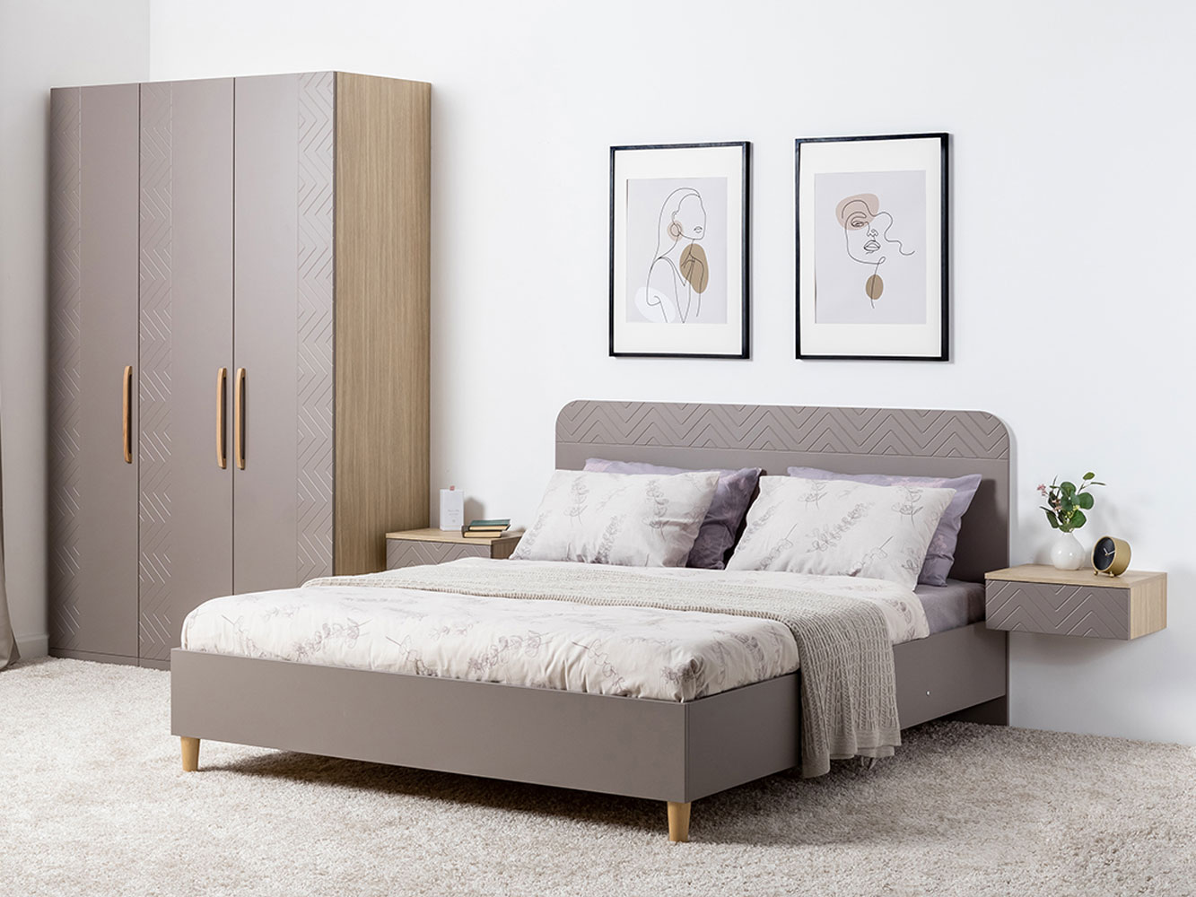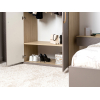 Внутреннее пространство разделено на удобные секции, что позволяет аккуратно хранить одежду, обувь и постельное белье. Фасады декорированы фрезеровкой в виде тонких линий. Деревянные ручки придают модели особые шарм и теплоту.