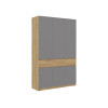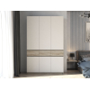 Внутри имеются вместительная секция со штангой для плечиков и полки, которые разместят рубашки, платья и сезонные вещи. Выдвижные ящики подойдут для полезных мелочей, а закрытые ниши — для обуви. Фасады не имеют ручек и открываются при помощи зазоров, скрытых за декоративными планками.