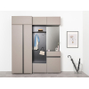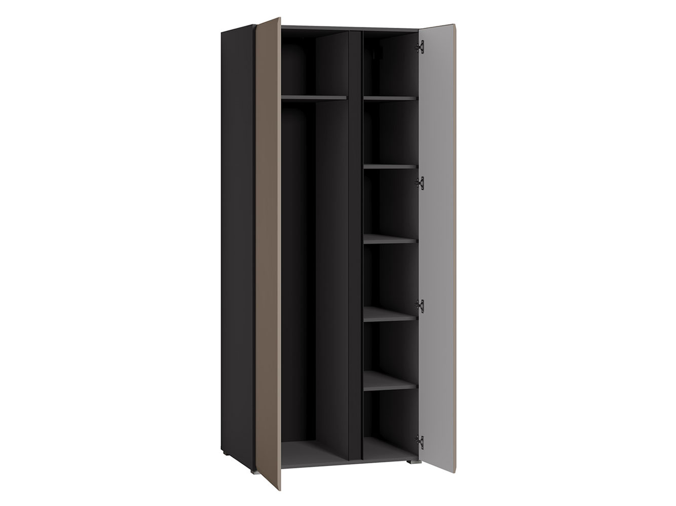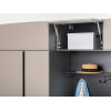 Внутри расположены два вместительных отделения со штангой и полками, чтобы быстро находить необходимое. Матовые фасады без лицевой фурнитуры создают приятный минималистичный облик мебели.