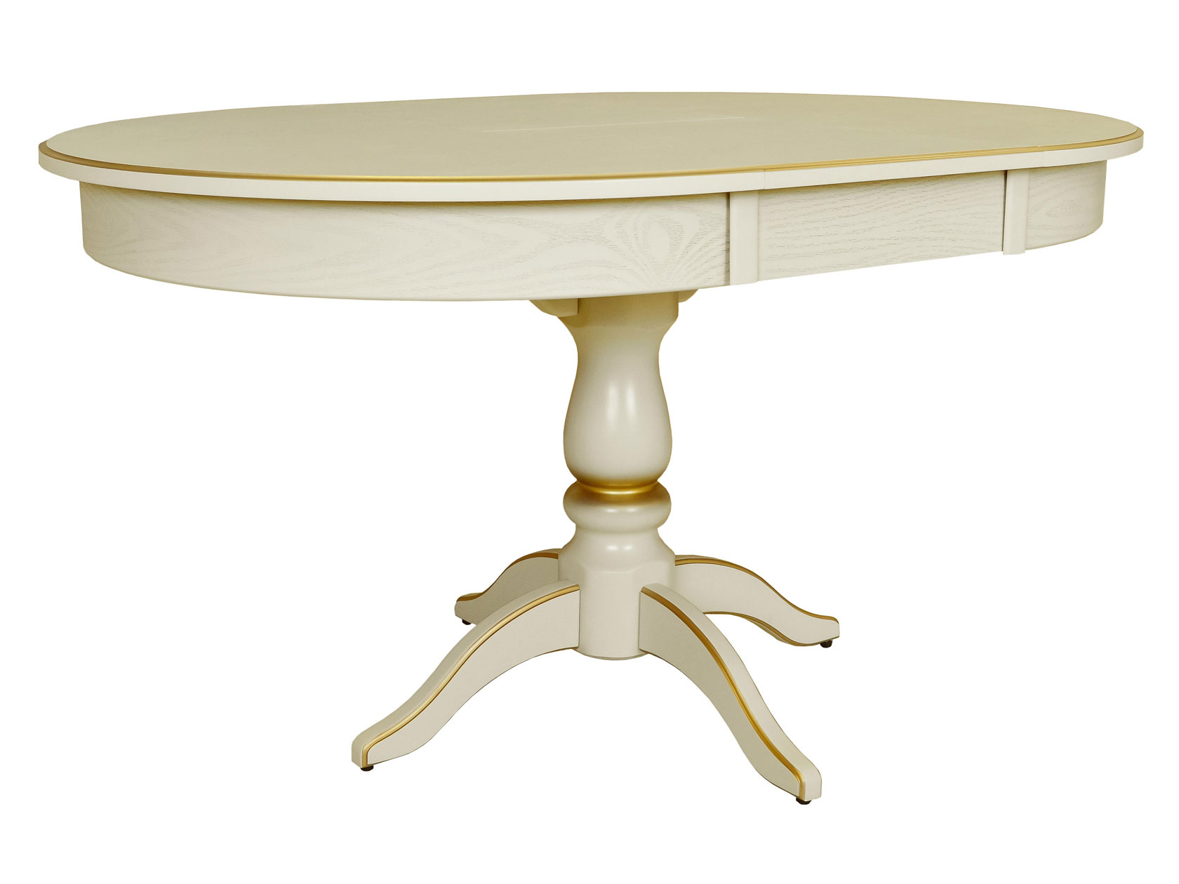 Круглая столешница с резной опорой прекрасно подойдет для обеденной зоны или гостиной. Модель раскладывается, благодаря чему за столом можно собираться большой компанией. Износостойкий экологичный материал прослужит долго, сохранив первоначальный вид.