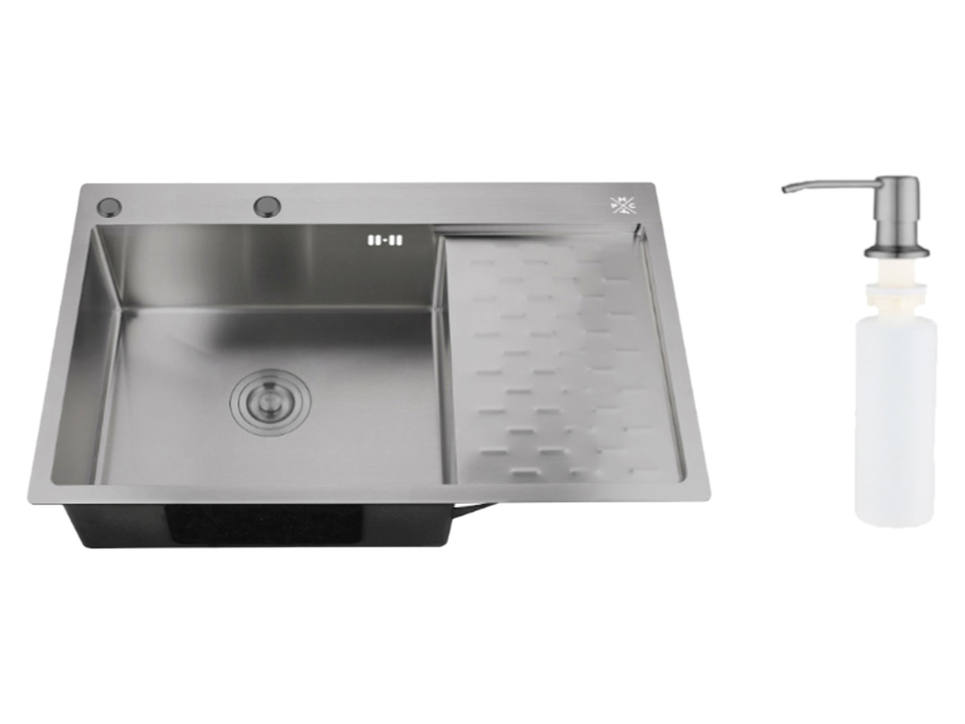 Мойка с чашей квадратной формы подходит для посуды и различных емкостей, а дозатор поможет поддерживать чистоту.