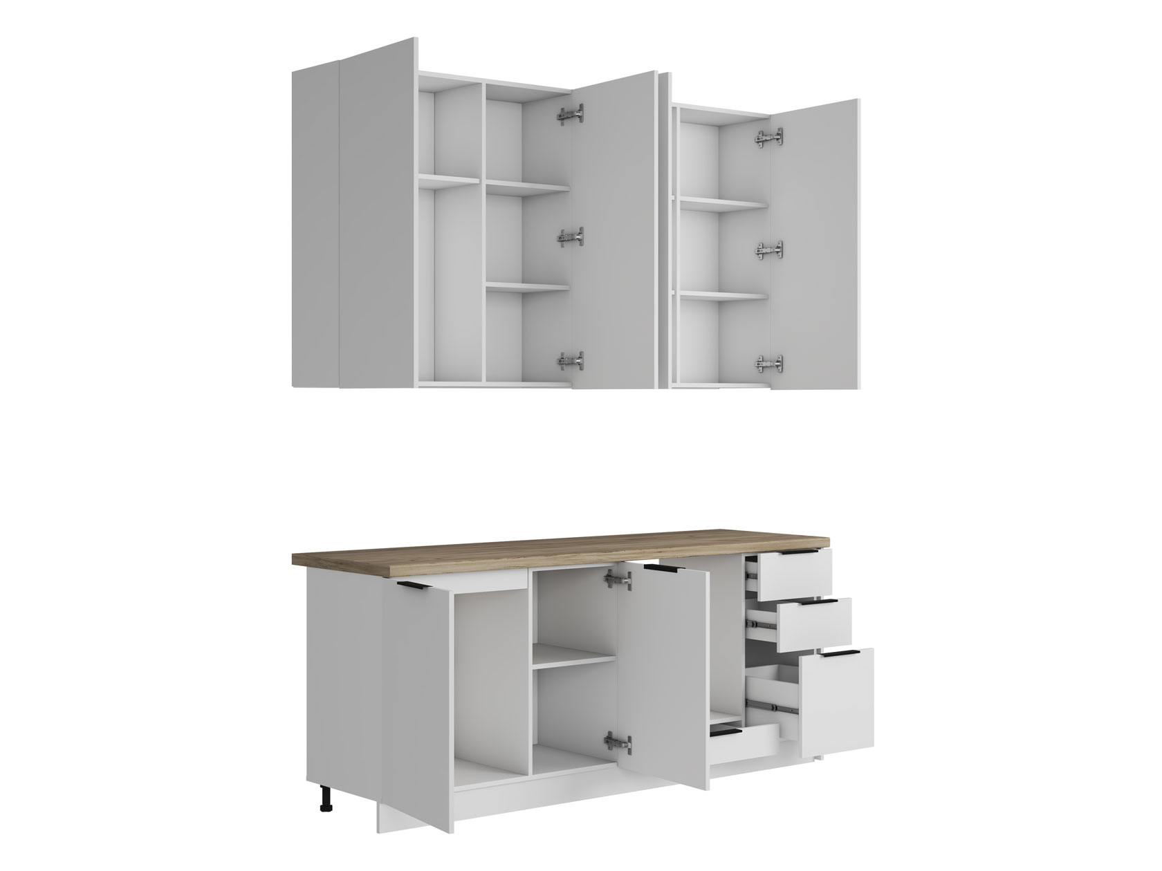 Фурнитура: четырехшарнирные петли, шариковые направляющие 450 мм.