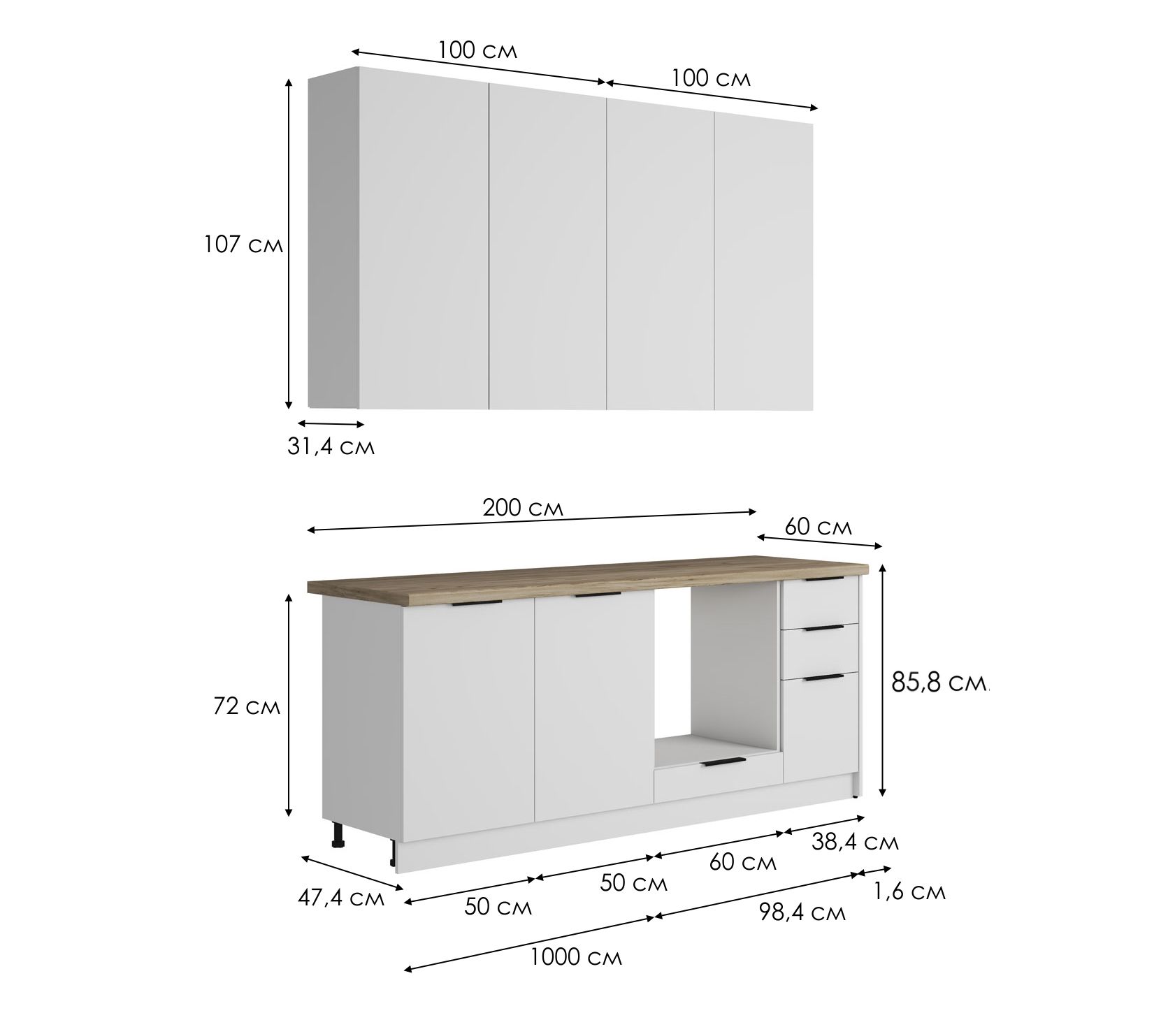 Шкаф 2 двери, 2 шт.: 107 х 100 х 31,4 см.