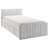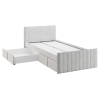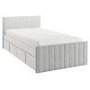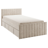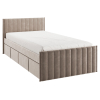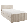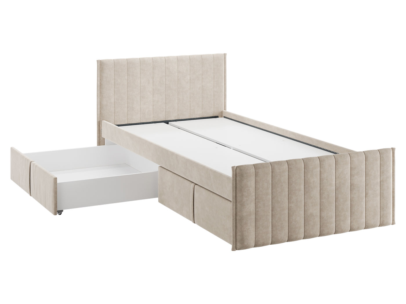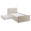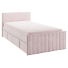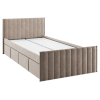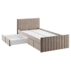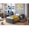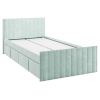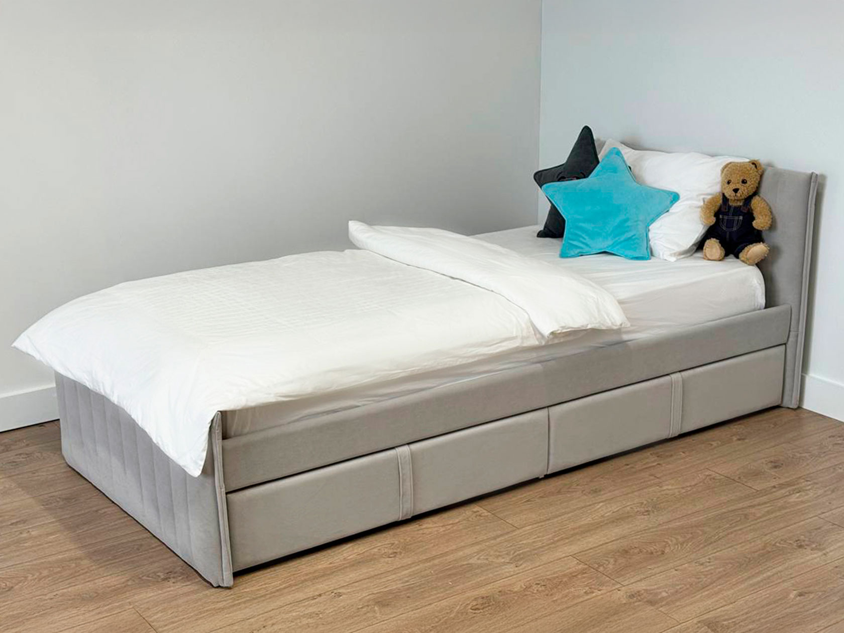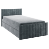 Изголовье с бархатистой обивкой обеспечит удобство во время чтения. Мягкая конструкция создает дополнительную безопасность при эксплуатации. Выкатные ящики подходят для хранения постельных принадлежностей, игрушек и других вещей.