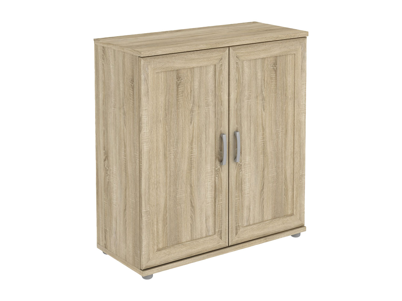 За распашными дверцами скрыто отделение с удобной полкой, которая делит внутреннее пространство на равные части. Универсальная модель с рамочными фасадами будет уместно смотреться в интерьере любой комнаты.
