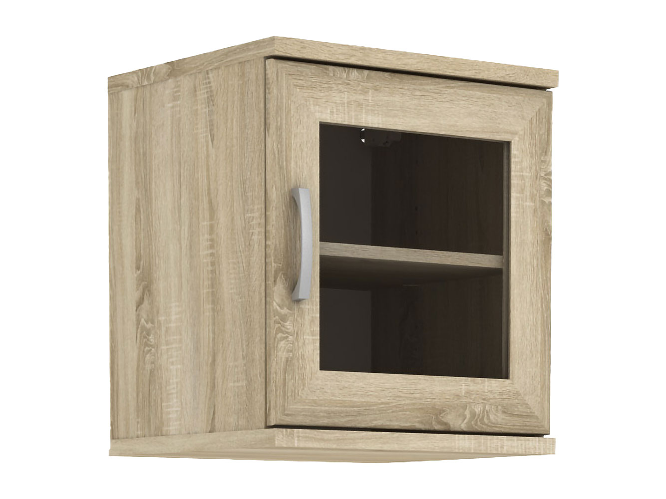 Распашная дверца со стеклянным фасадом позволяет продемонстрировать содержимое, но при этом защищает его от солнца и пыли.