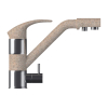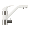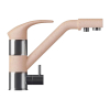 Два рычага управления позволяют аккуратно регулировать поток. Конструкция предусматривает отдельный кран для питьевой воды. Гладкая поверхность и плавные линии создают стильный внешний вид смесителя.