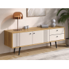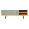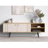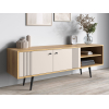 Модель подойдет для установки аудио- и видеоаппаратуры, размещения декора, журналов и книг. Фасады с вертикальной фрезеровкой и наклонные ножки создают уютные акценты, которые подчеркнут как современный, так и ретро-интерьер.