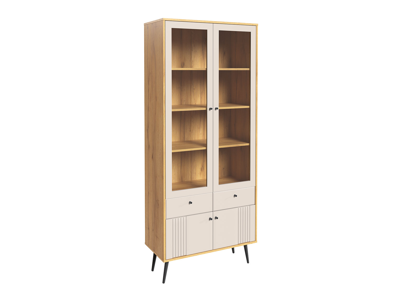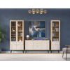 Благодаря стеклянным вставкам модель позволяет расположить на виду дорогие сердцу вещи и защищает их от пыли и солнечных лучей. Выдвижные ящики и отделения за распашными дверцами аккуратно разместят всё, что должно быть скрыто от посторонних глаз.