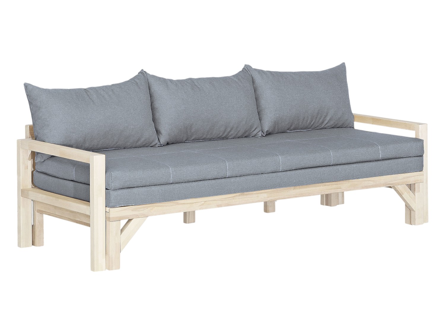Мягкие приспинные подушки обеспечивают дополнительный комфорт во время отдыха. Простой механизм позволяет быстро трансформировать диван в ровное место для сна. Каркас из массива — прочная, экологичная и долговечная основа модели. Высокие ножки не мешают проводить уборку в комнате, в том числе с помощью робота-пылесоса.