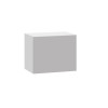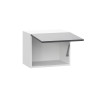 Откидная дверца оснащена газовыми амортизаторами, которые фиксируют поднятый фасад так, чтобы не приходилось удерживать его самостоятельно. Неглубокий модуль не перегружает интерьер.