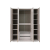 Внутреннее наполнение позволяет аккуратно разместить одежду из деликатных тканей, трикотаж и повседневные комплекты. Матовые фасады и акцентные ручки в оттенке сатинового золота подчеркивают утонченный облик модели.