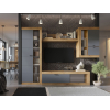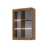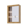 С одной стороны расположены стеклянные полки, что позволяет эффектно разместить красивую коллекцию посуды, книг и сувениров. Закрытая секция представлена отделением с распашными дверцами, которые скрывают содержимое от посторонних глаз.