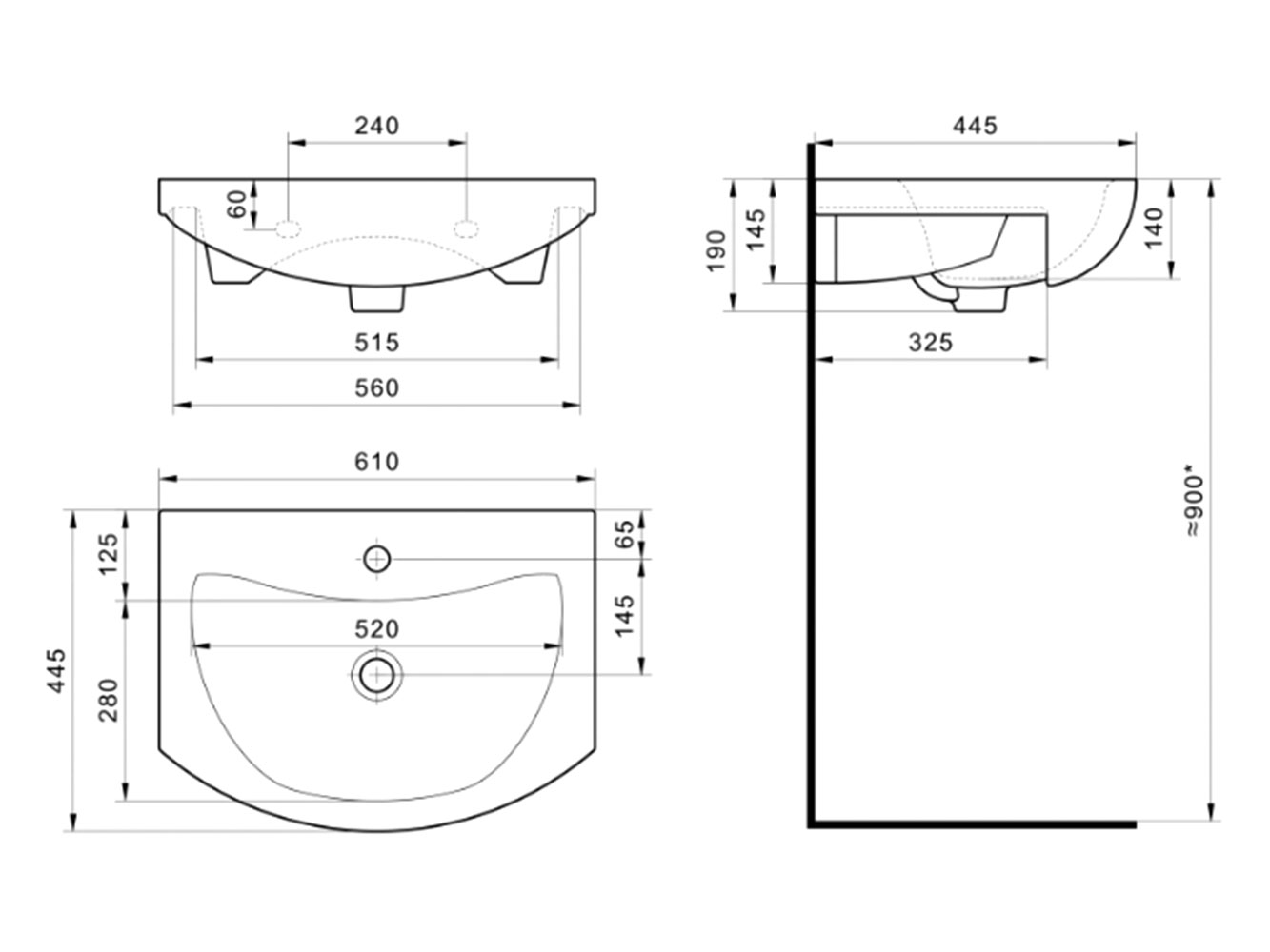 Монтаж раковины: к стене.
