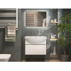Набор включает удобную тумбу с большим выдвижным ящиком и LED-зеркало с подсветкой. Навесной элемент экономит место, придавая интерьеру визуальную легкость. За гладкими матовыми фасадами легко ухаживать, а качественные направляющие обеспечивают комфортную эксплуатацию.