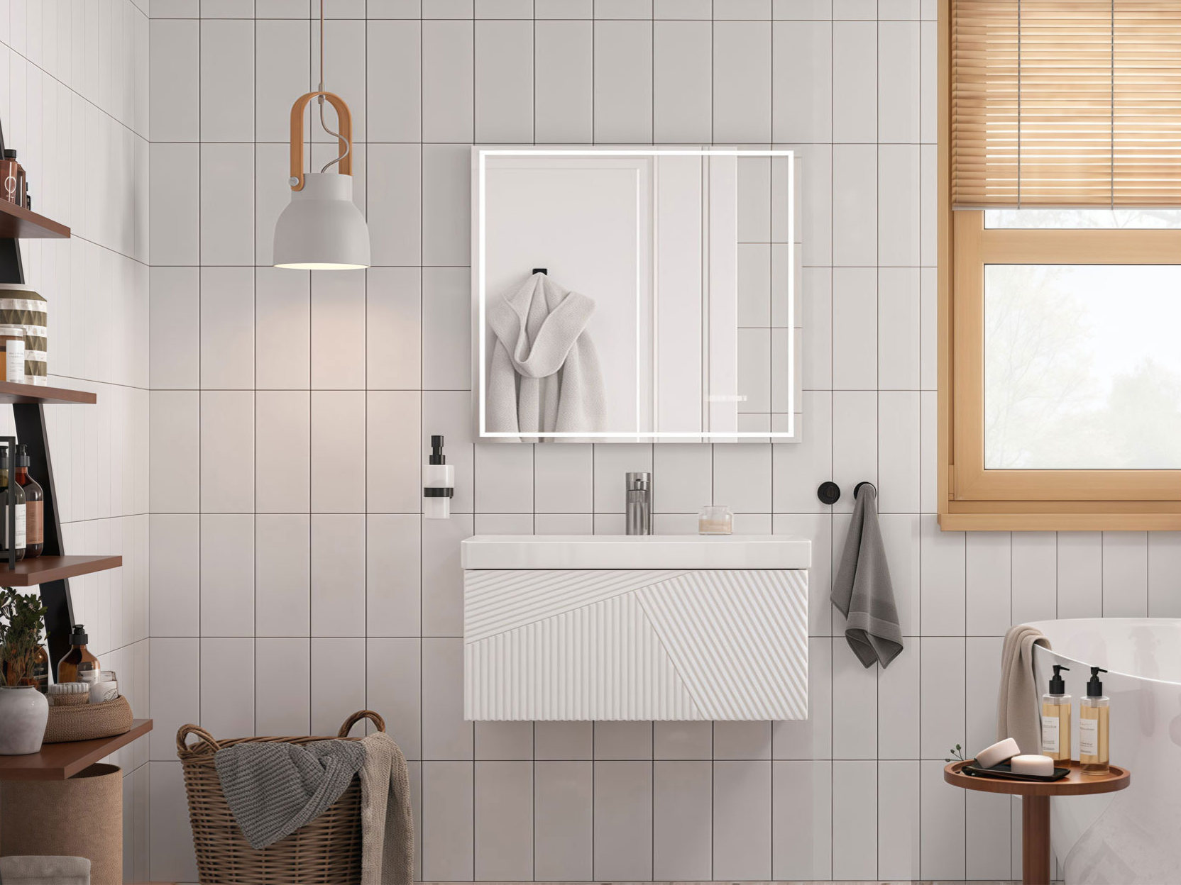 Набор обеспечивает удобное хранение всех нужных предметов, а также создает комфортные условия для макияжа и личной гигиены. Фрезерованный фасад без лицевой фурнитуры отлично вписывается в большинство современных интерьеров.