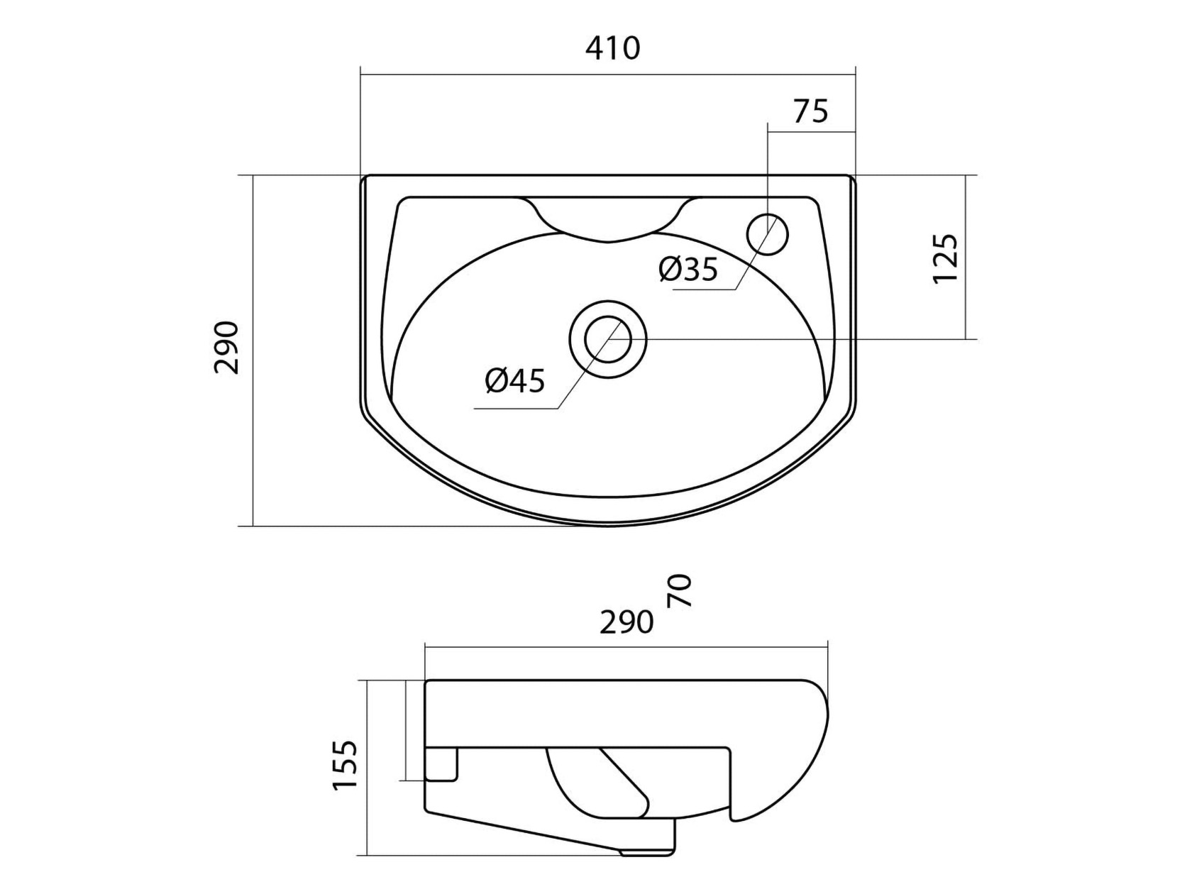 Диаметр отверстия слива: 4,5 см.