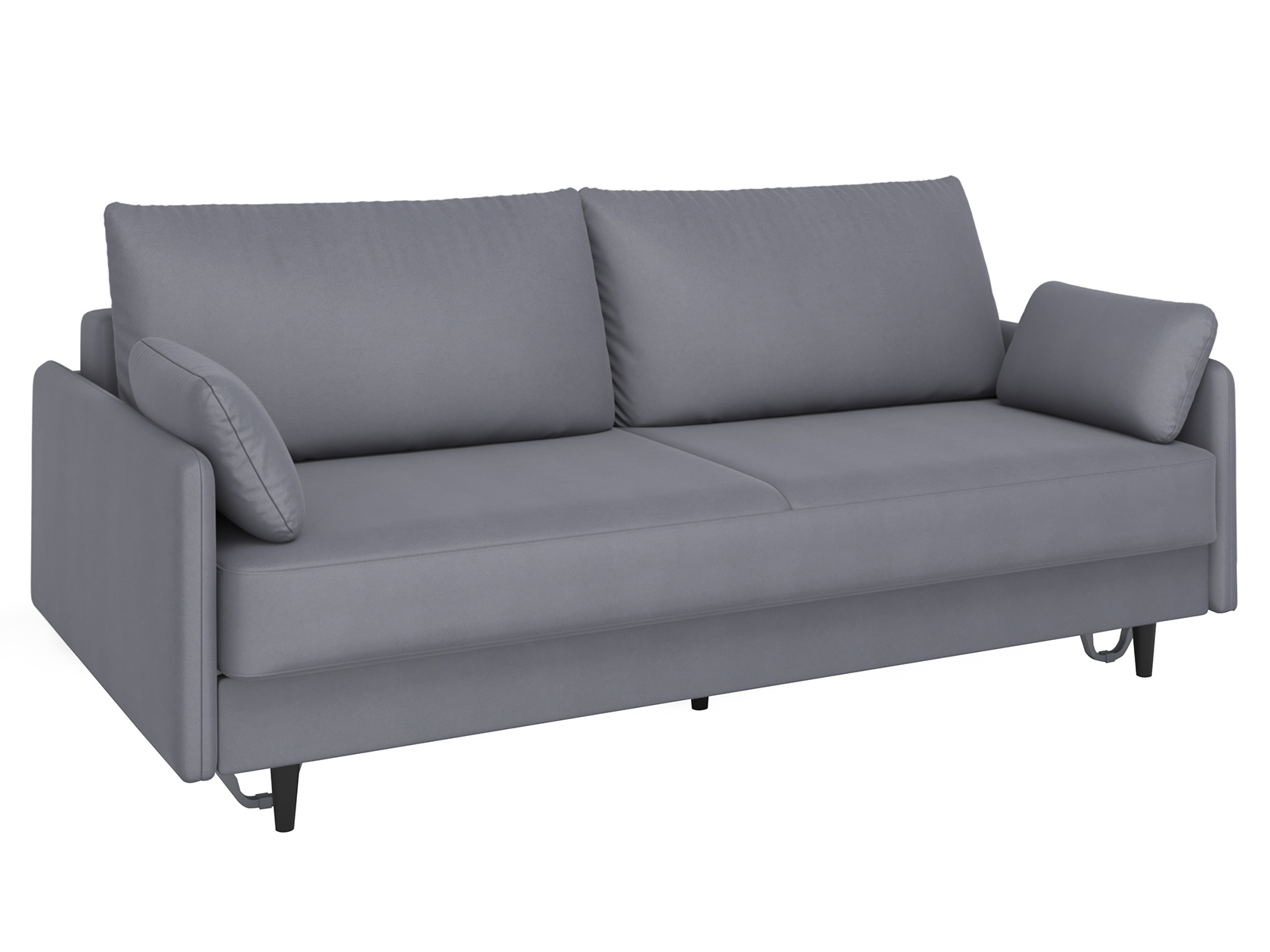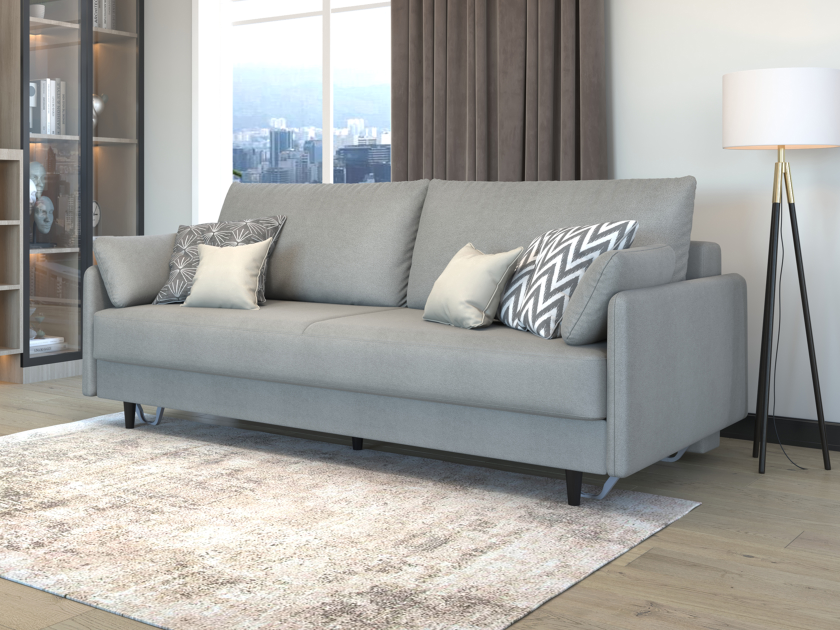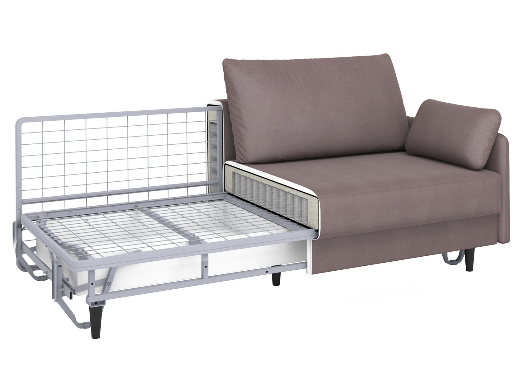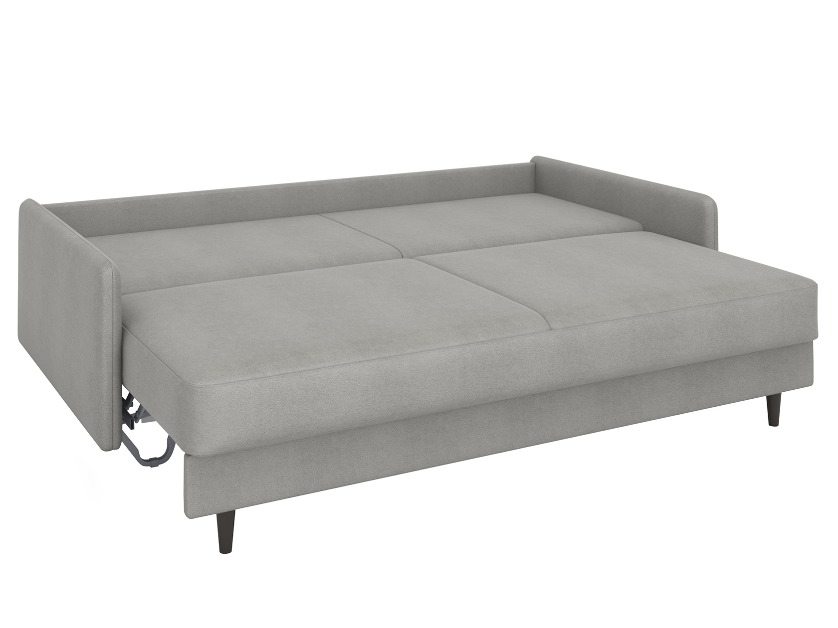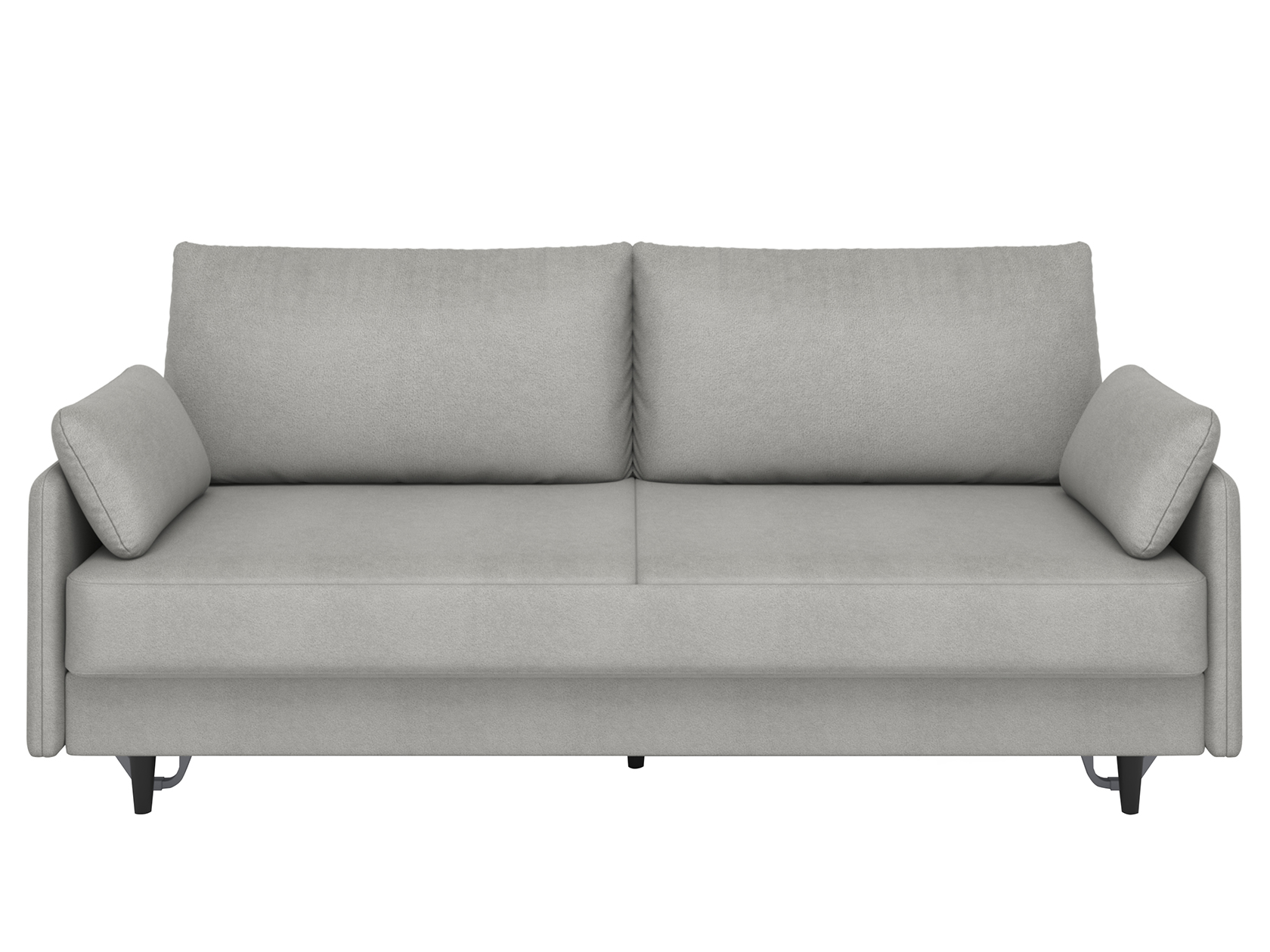 Однотонный сдержанный дизайн легко интегрировать в любой интерьер. Металлокаркас обеспечивает надежность и долговечность конструкции. Съемный чехол упрощает уход за обивкой, а удобный механизм помогает быстро трансформировать модель в ровное спальное место. Встроенный короб для белья добавляет практичности, а высокие ножки придают мебели визуальную легкость.