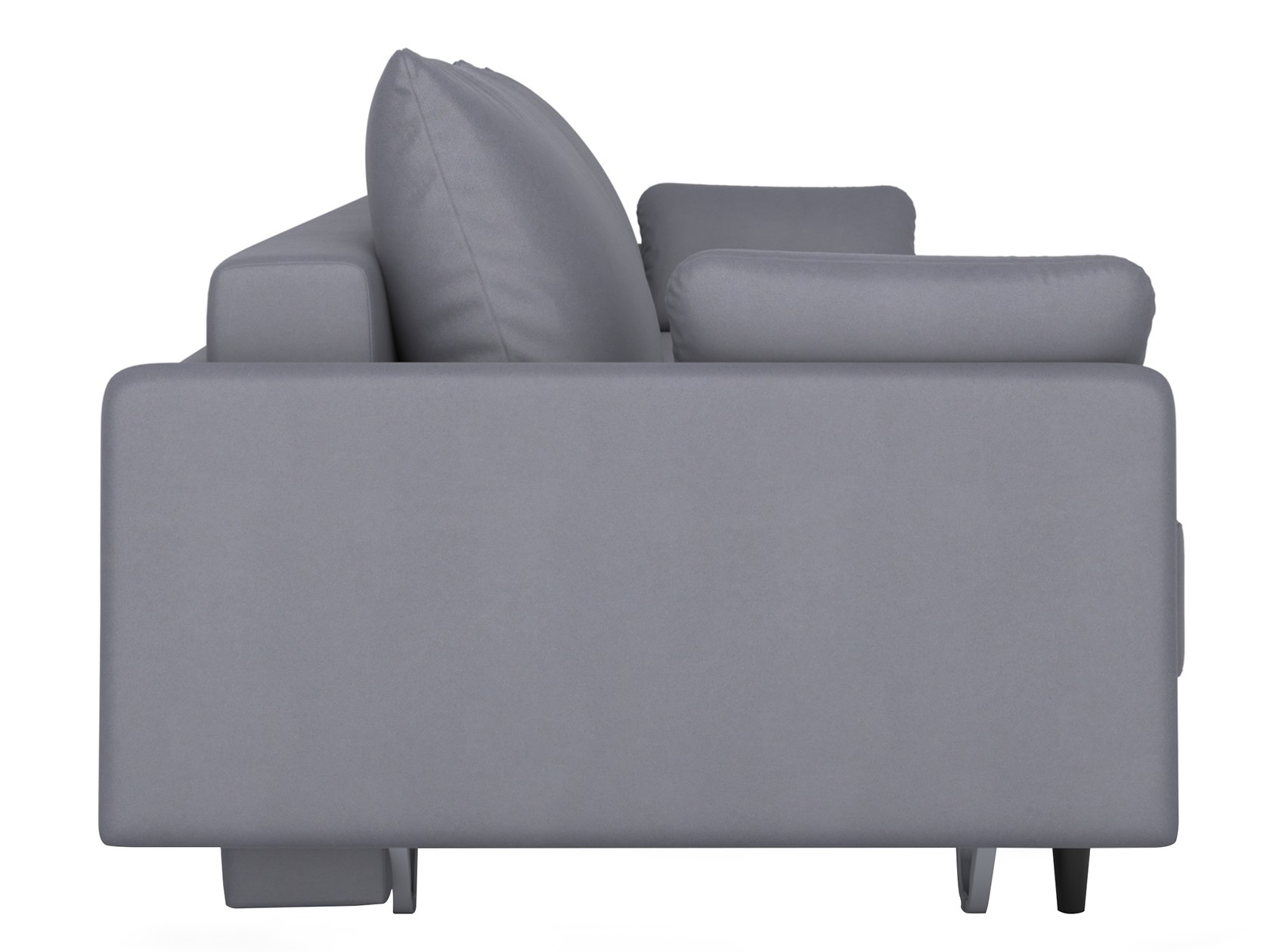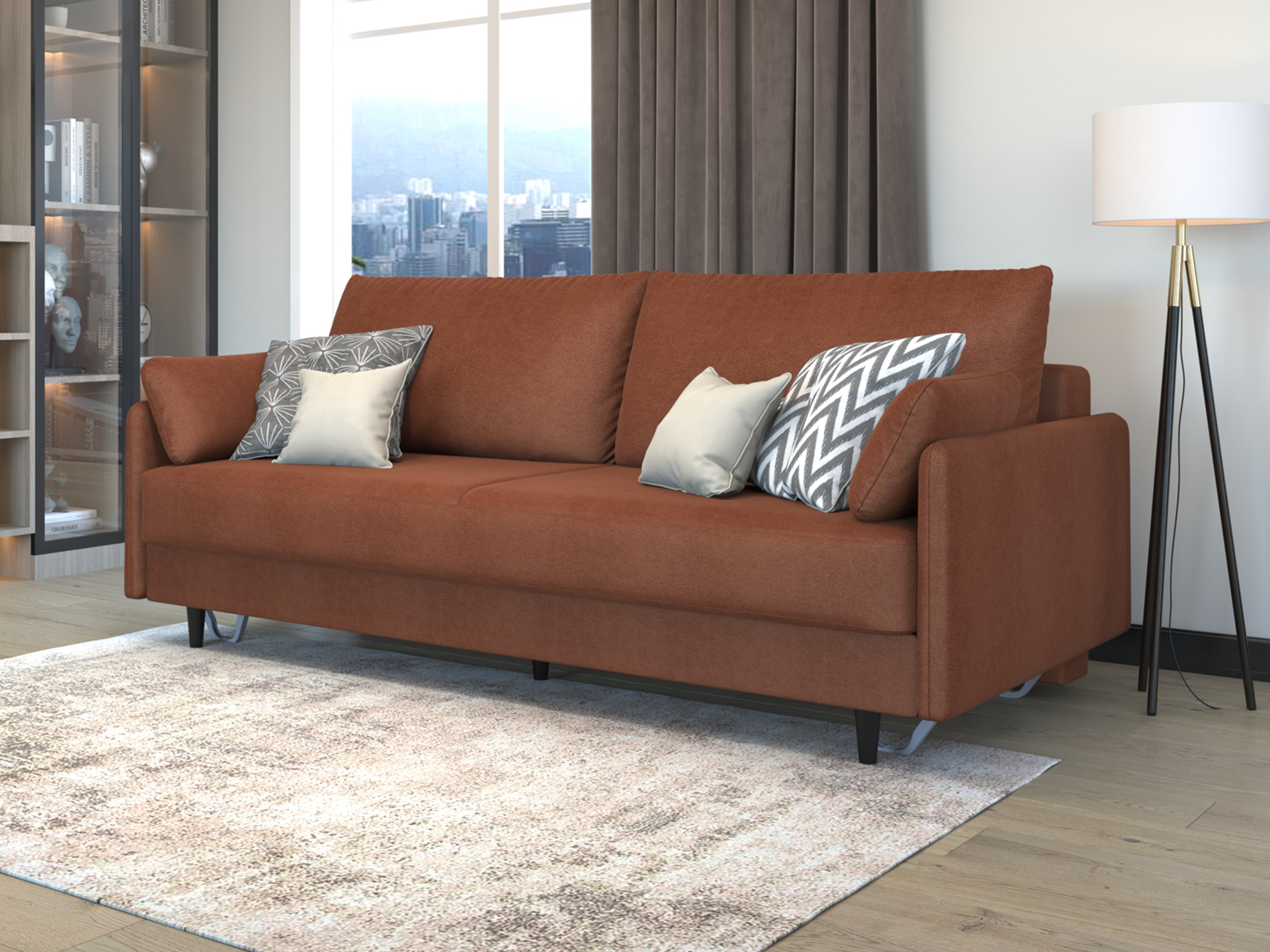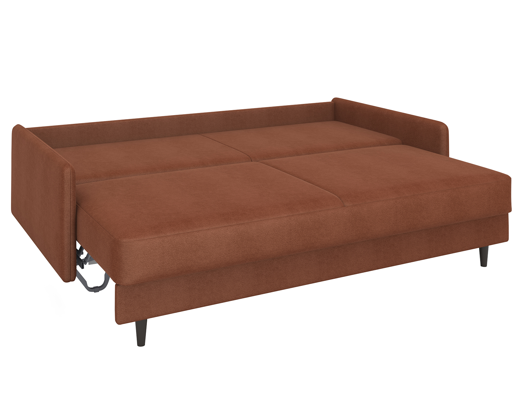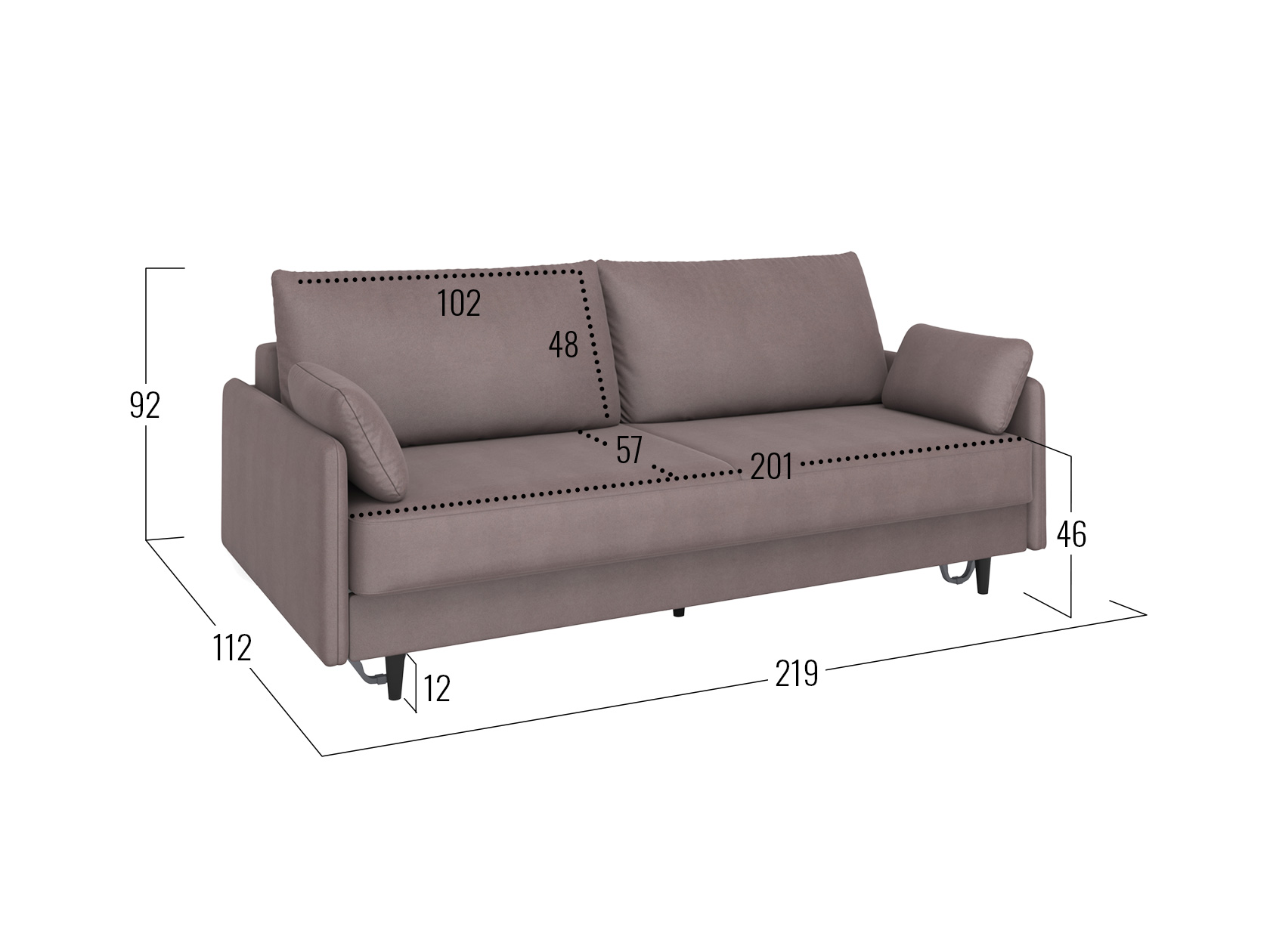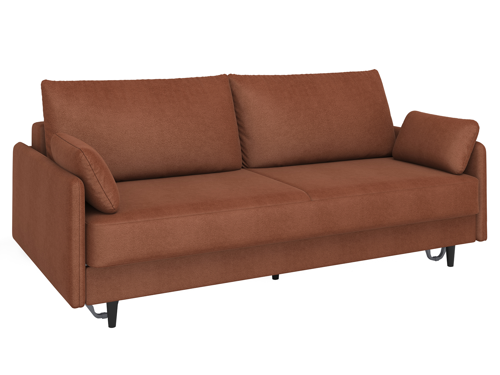 Однотонный сдержанный дизайн легко интегрировать в любой интерьер. Металлокаркас обеспечивает надежность и долговечность конструкции. Съемный чехол упрощает уход за обивкой, а удобный механизм помогает быстро трансформировать модель в ровное спальное место. Встроенный короб для белья добавляет практичности, а высокие ножки придают мебели визуальную легкость.