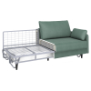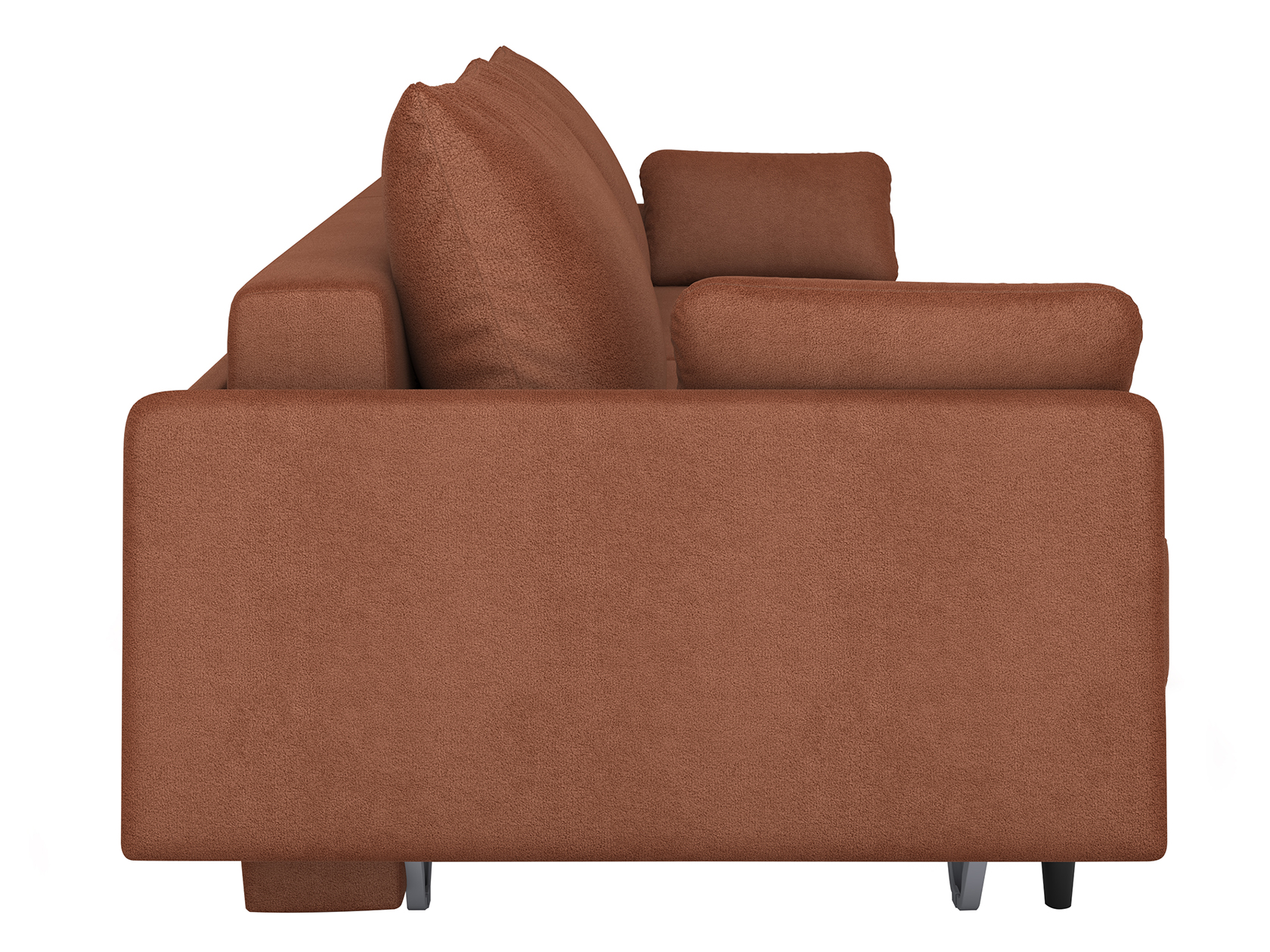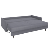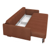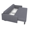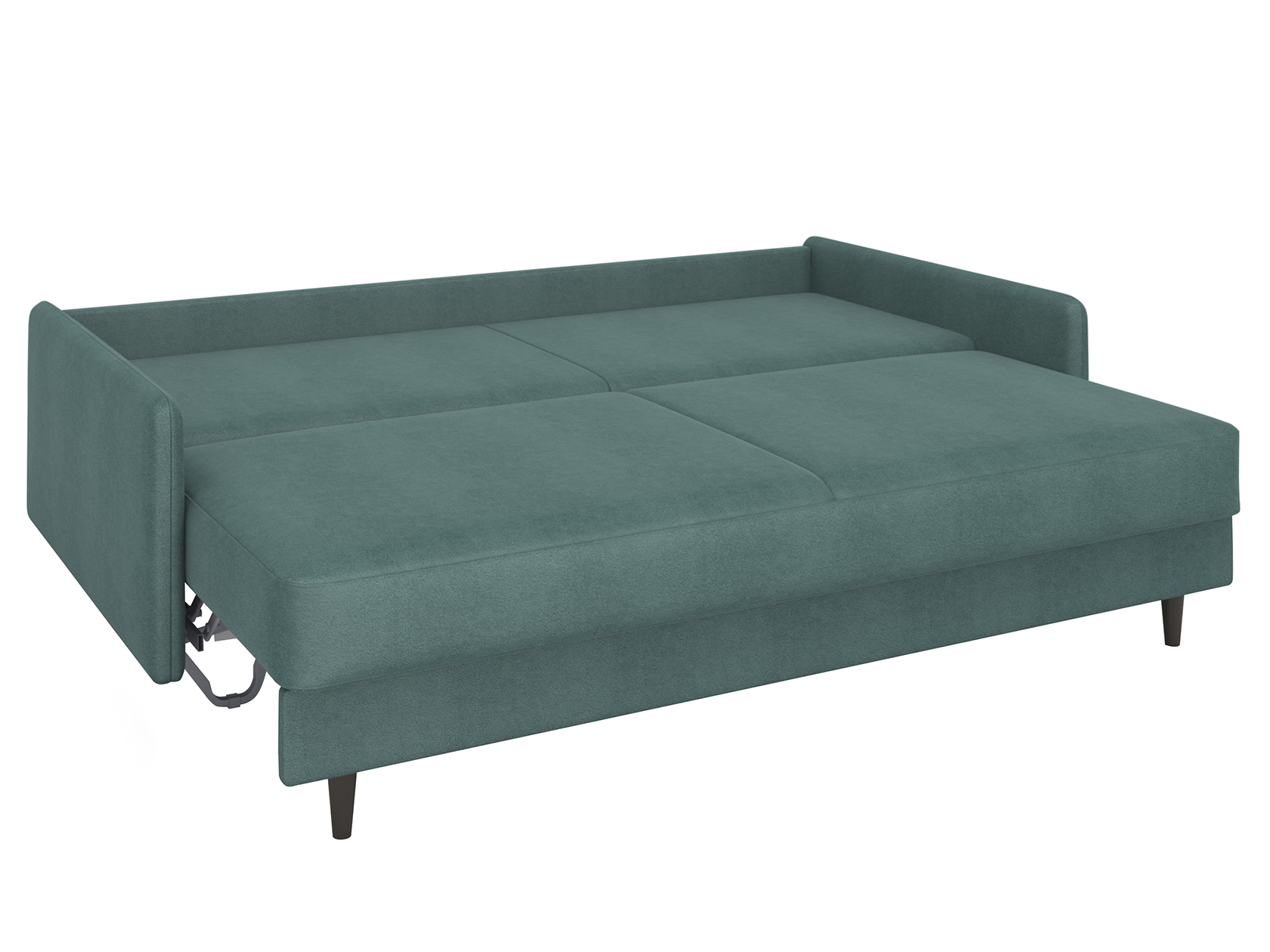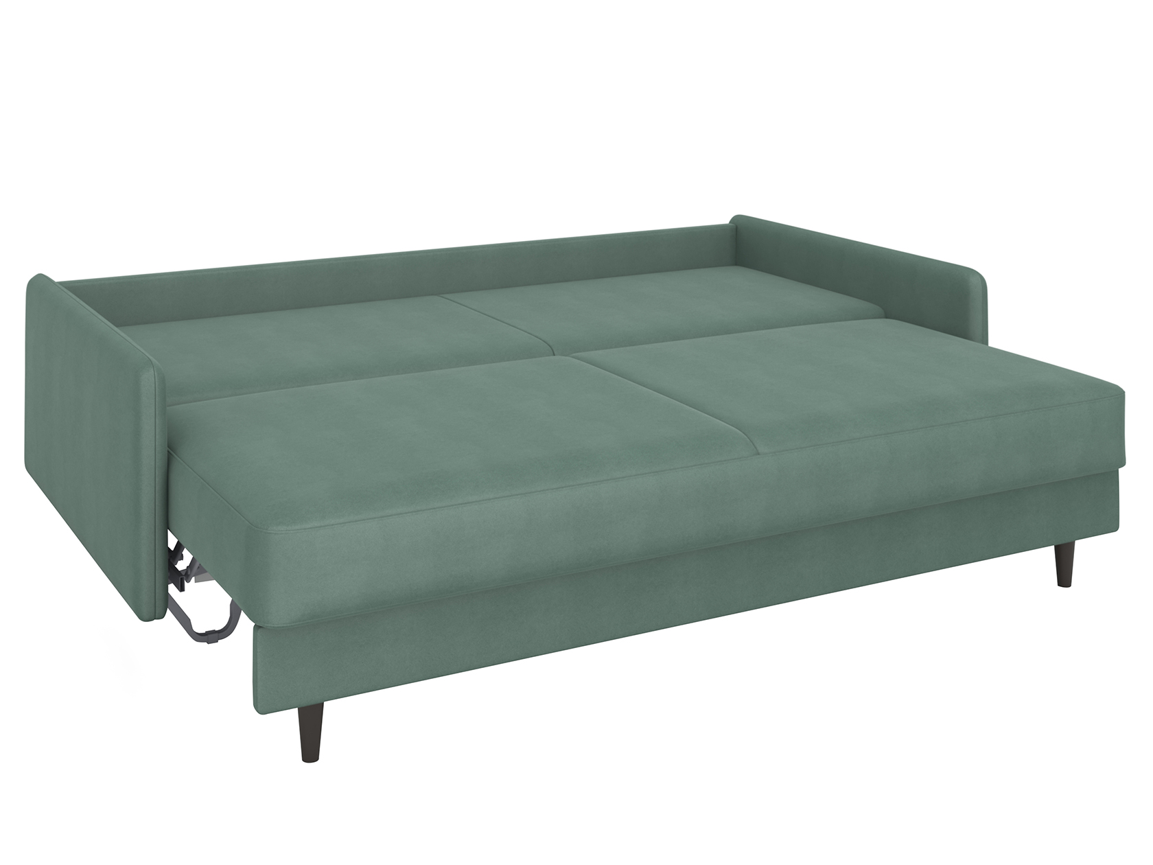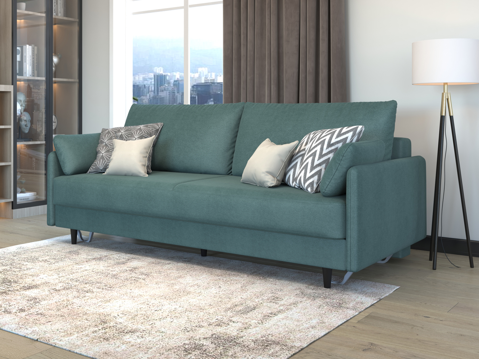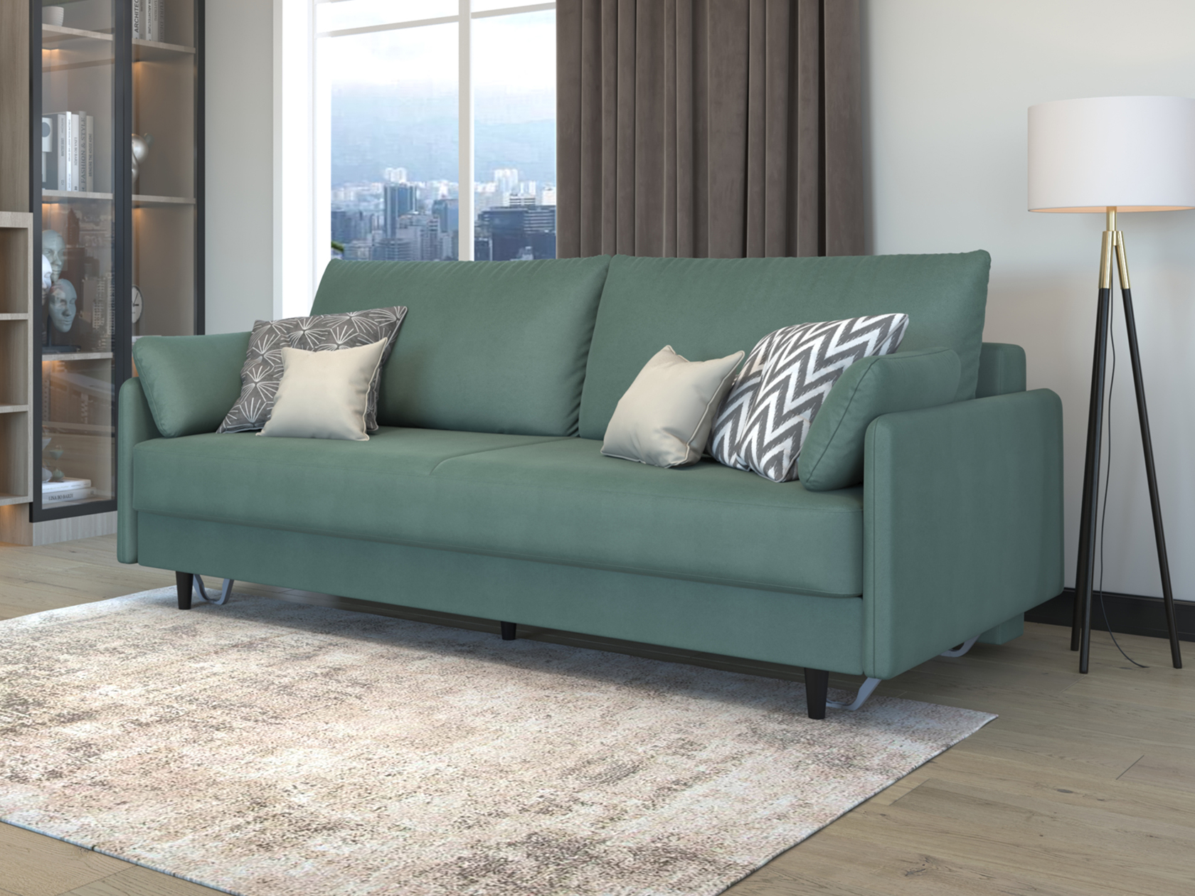 Однотонный сдержанный дизайн легко интегрировать в любой интерьер. Металлокаркас обеспечивает надежность и долговечность конструкции. Съемный чехол упрощает уход за обивкой, а удобный механизм помогает быстро трансформировать модель в ровное спальное место. Встроенный короб для белья добавляет практичности, а высокие ножки придают мебели визуальную легкость.