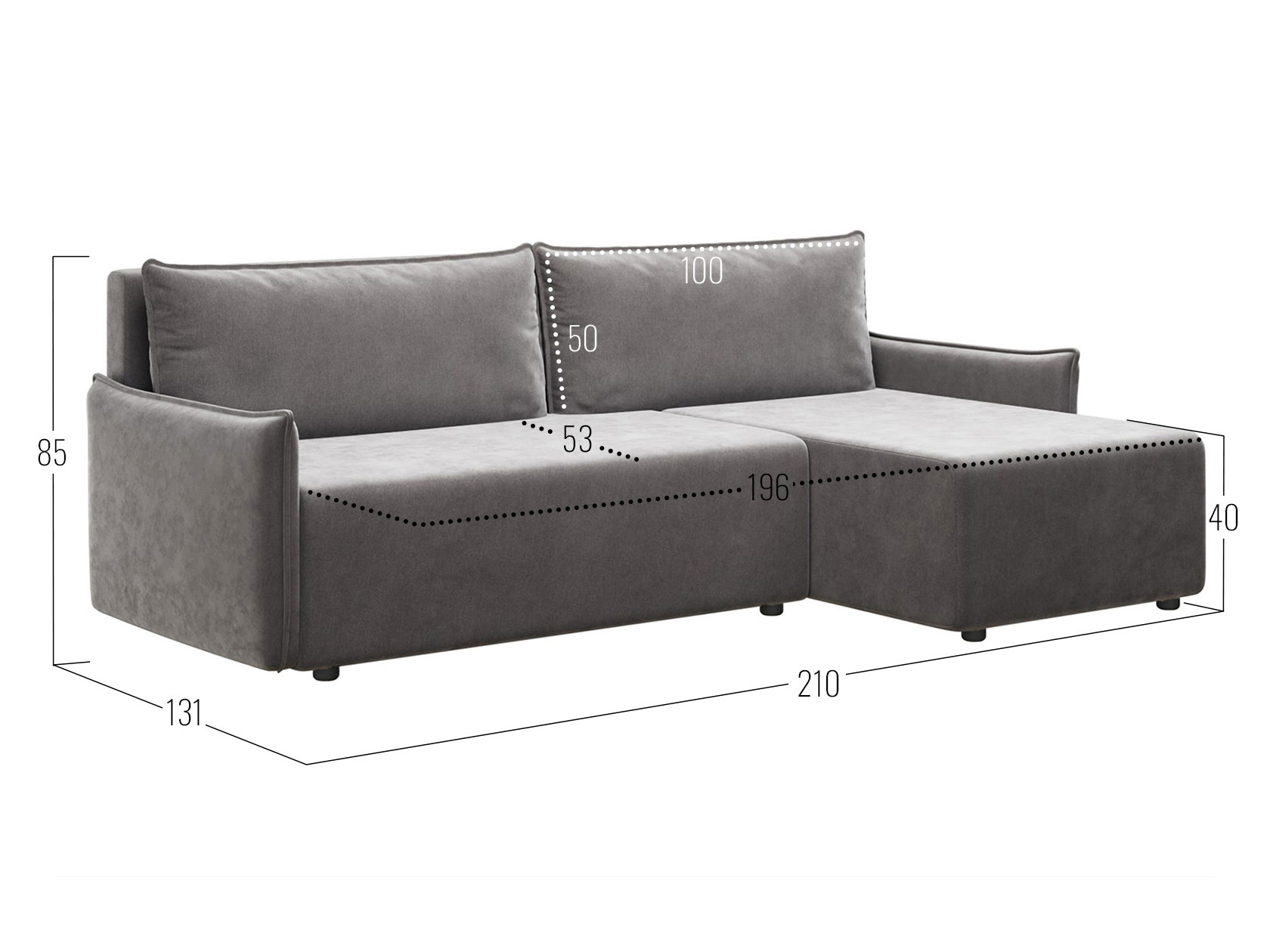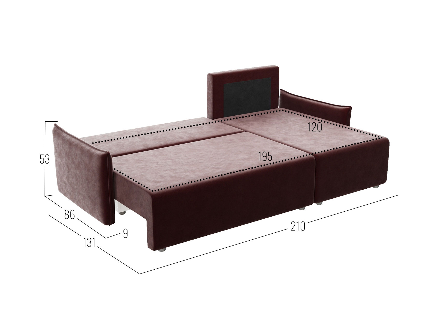 Посадочное место без подушек (ШхГ): 196 х 71 см.