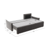 Модель особенно актуальна для обустройства многофункциональной гостиной или студии. Узкие подлокотники — отличный способ сэкономить пространство, сохранив удобную посадку. Минималистичный силуэт и однотонная обивка удачно сочетаются с большинством интерьеров. Небольшой бельевой короб — практичное дополнение конструкции.