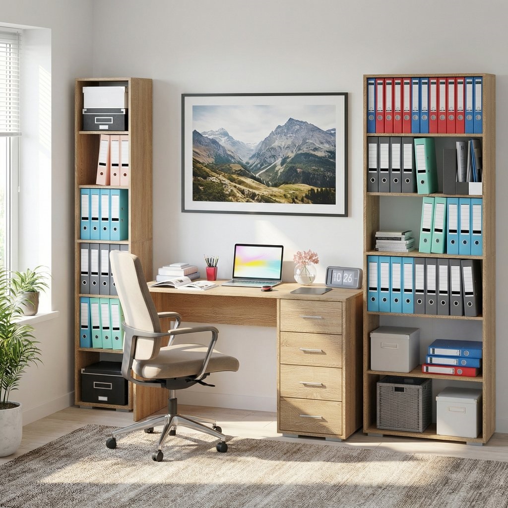 Просторная поверхность идеально подходит для ноутбука, настольной лампы и канцелярских аксессуаров. Тумба с выдвижными ящиками позволяет аккуратно хранить необходимые документы и файлы. Лаконичный дизайн и простой в уходе материал — важные преимущества модели.