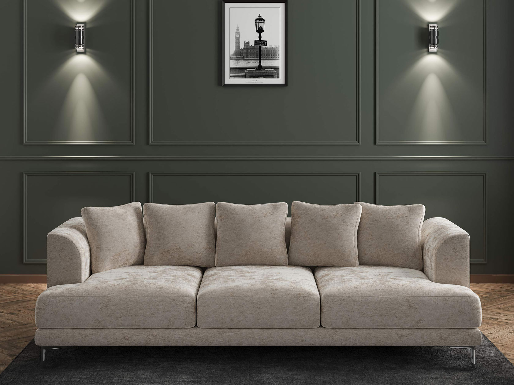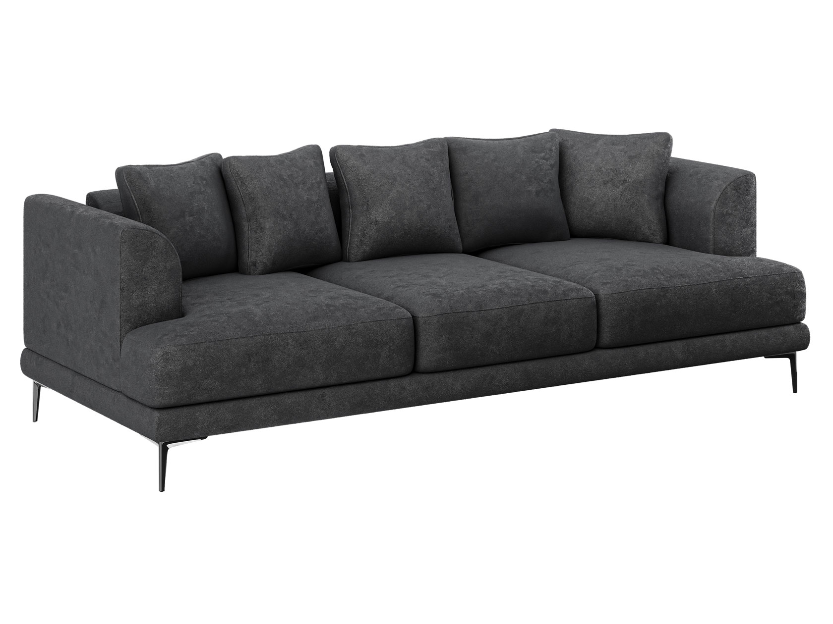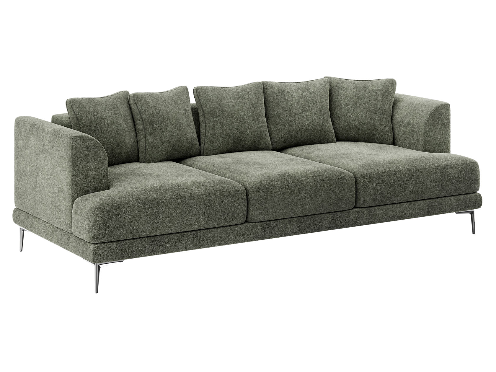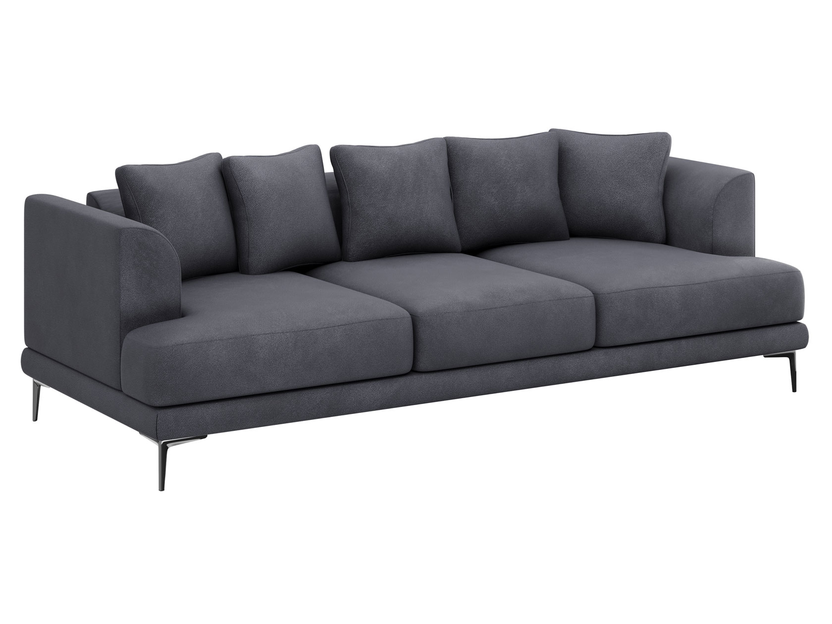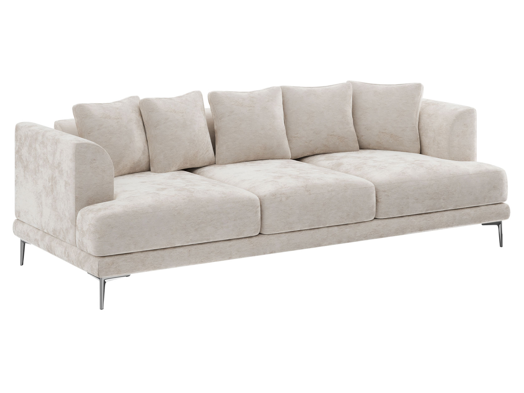 Плавный силуэт, мягкая обивка и высокие ножки создают неповторимый облик модели. Со всех сторон используется лицевая ткань, а значит, диван можно установить спинкой на виду. Скругленные подлокотники и мягкие подушки позволяют комфортно расположиться перед телевизором или во время встреч с друзьями. Диван достаточно просторный, и при необходимости выполнит роль гостевого спального места.