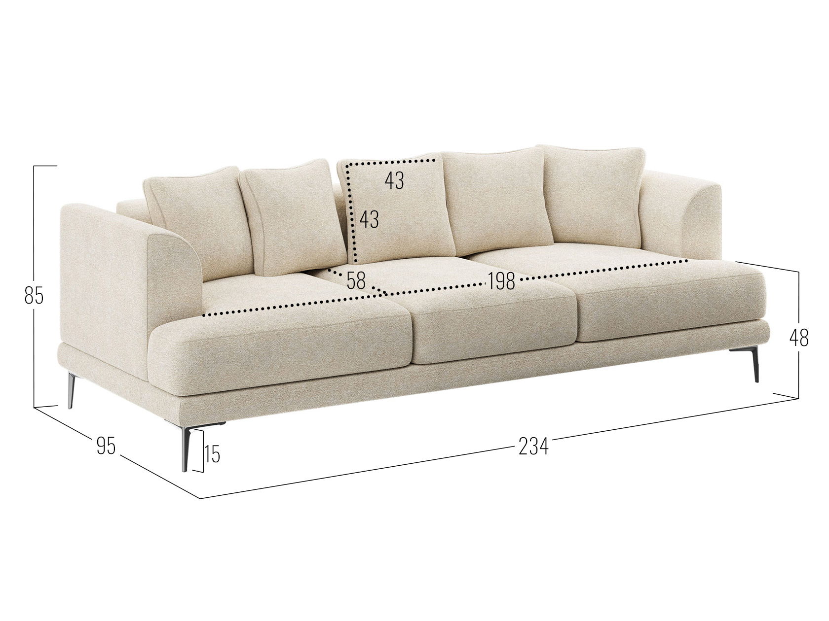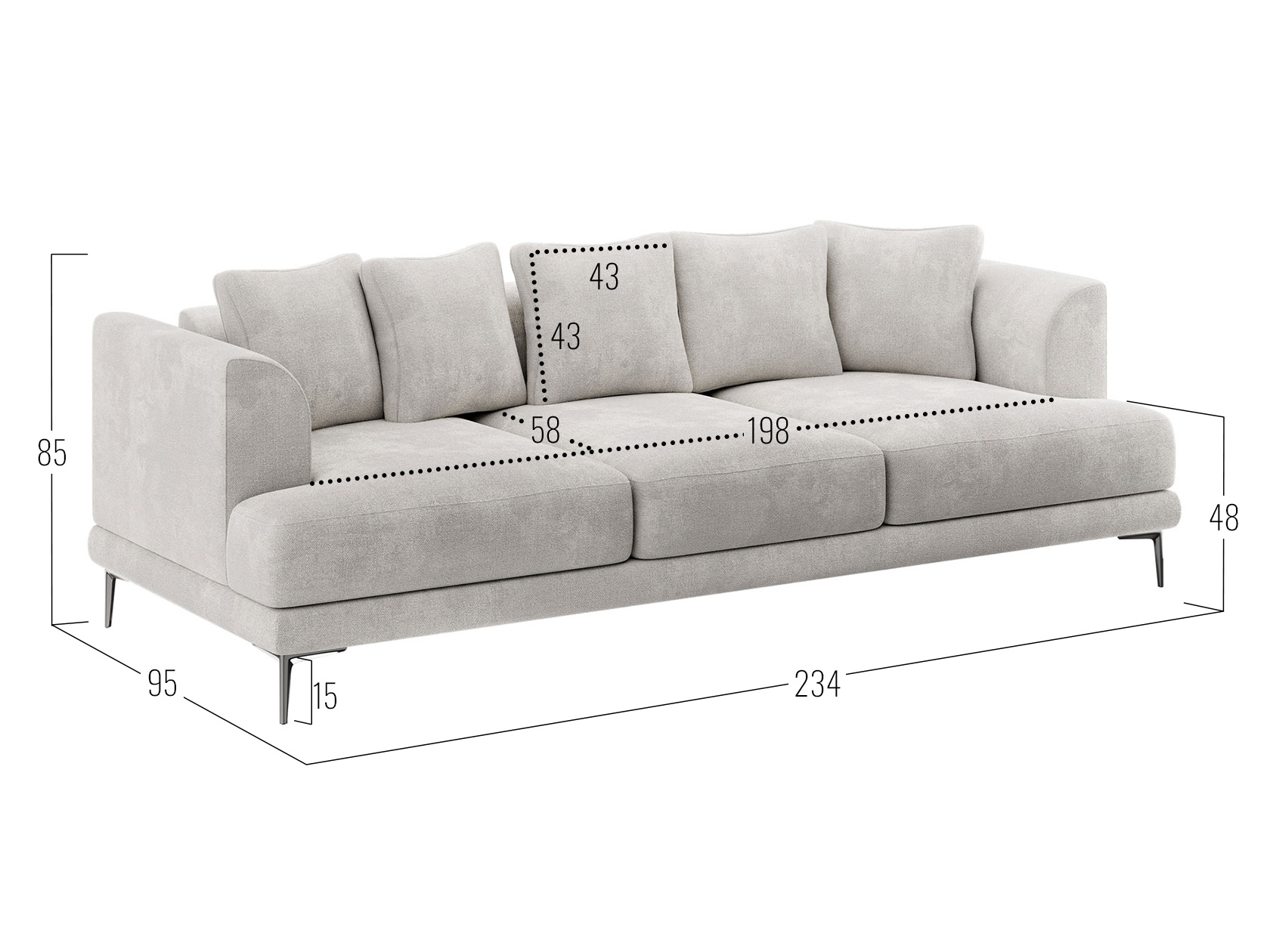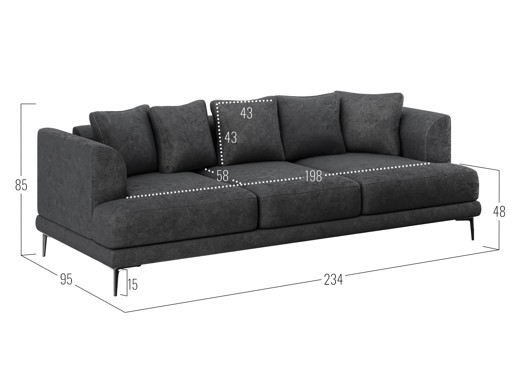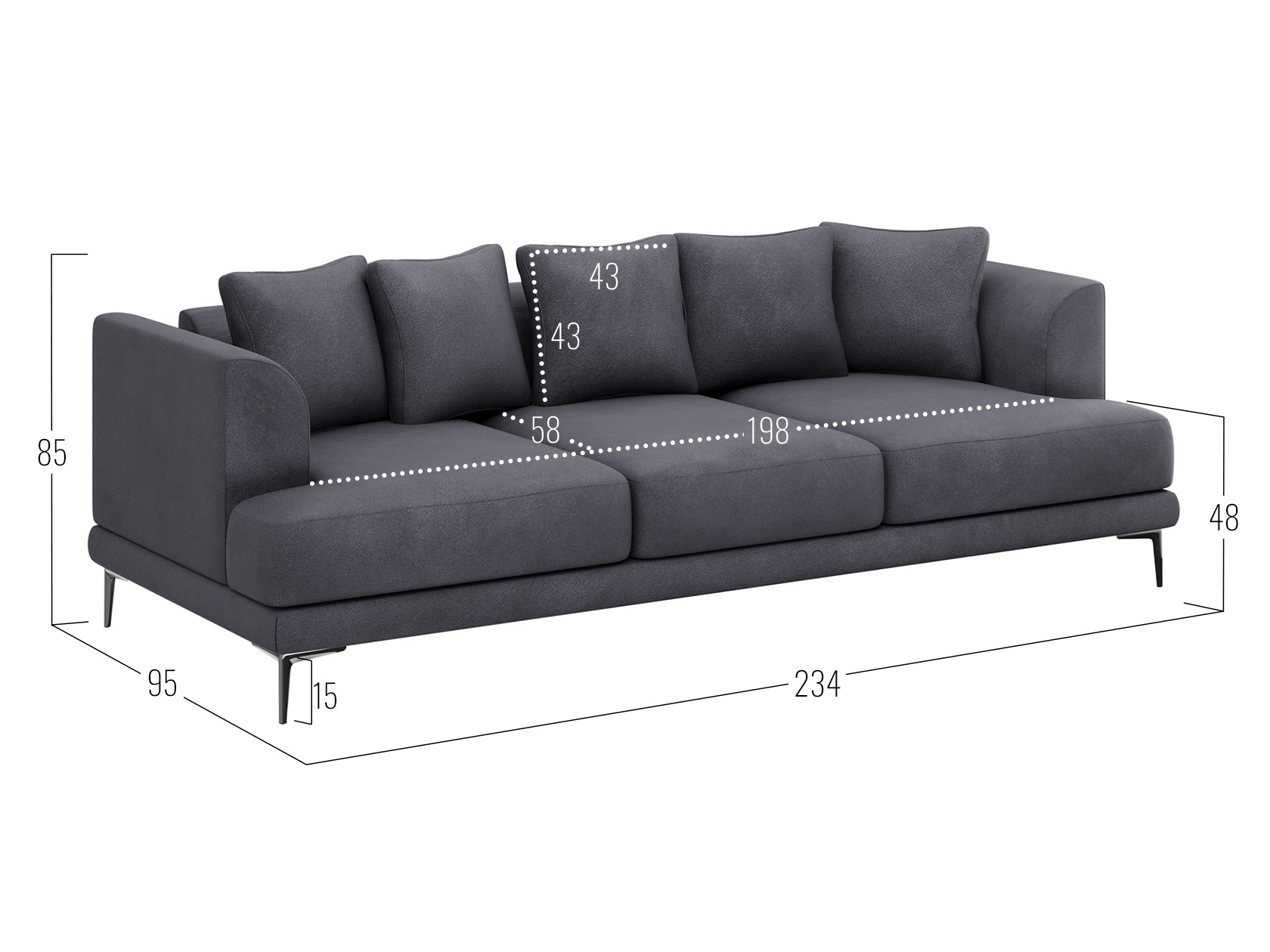 Посадочное место без подушек (ШхГ): 198 х 77 см.
