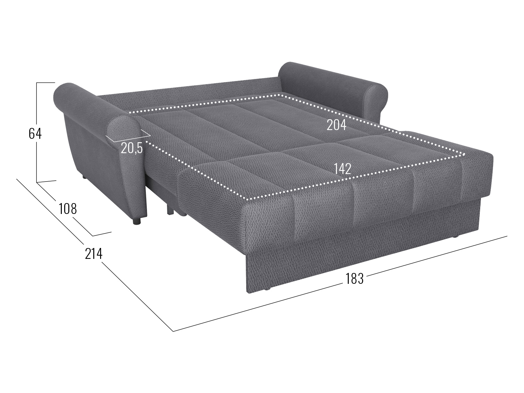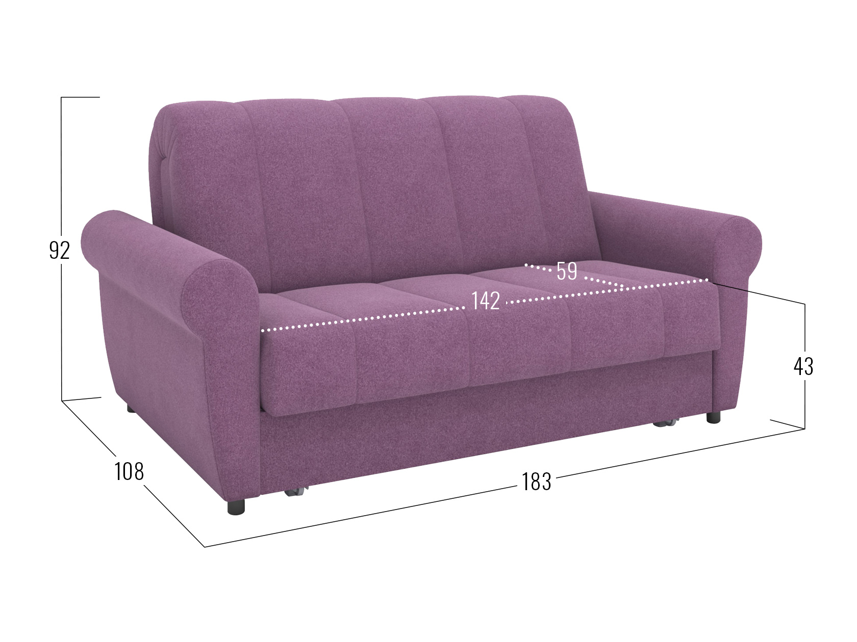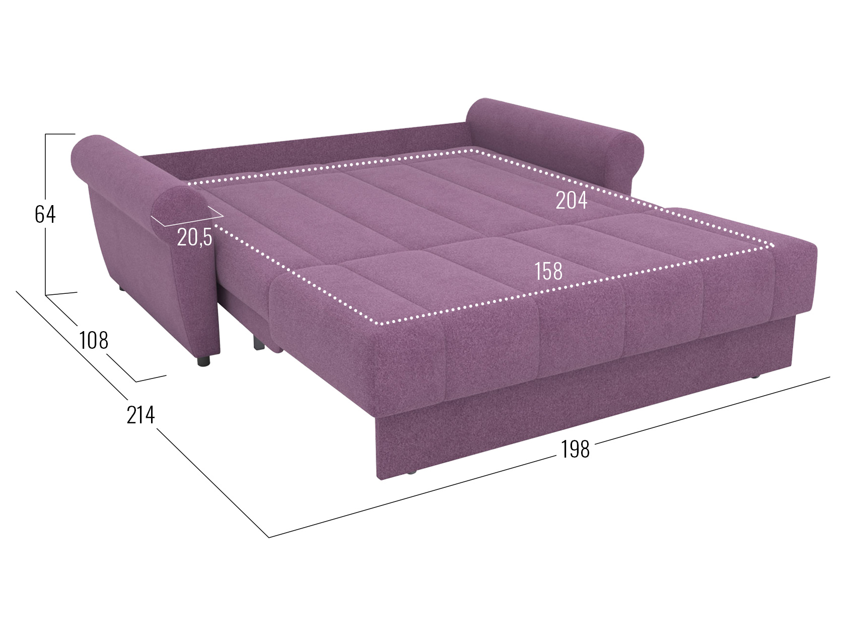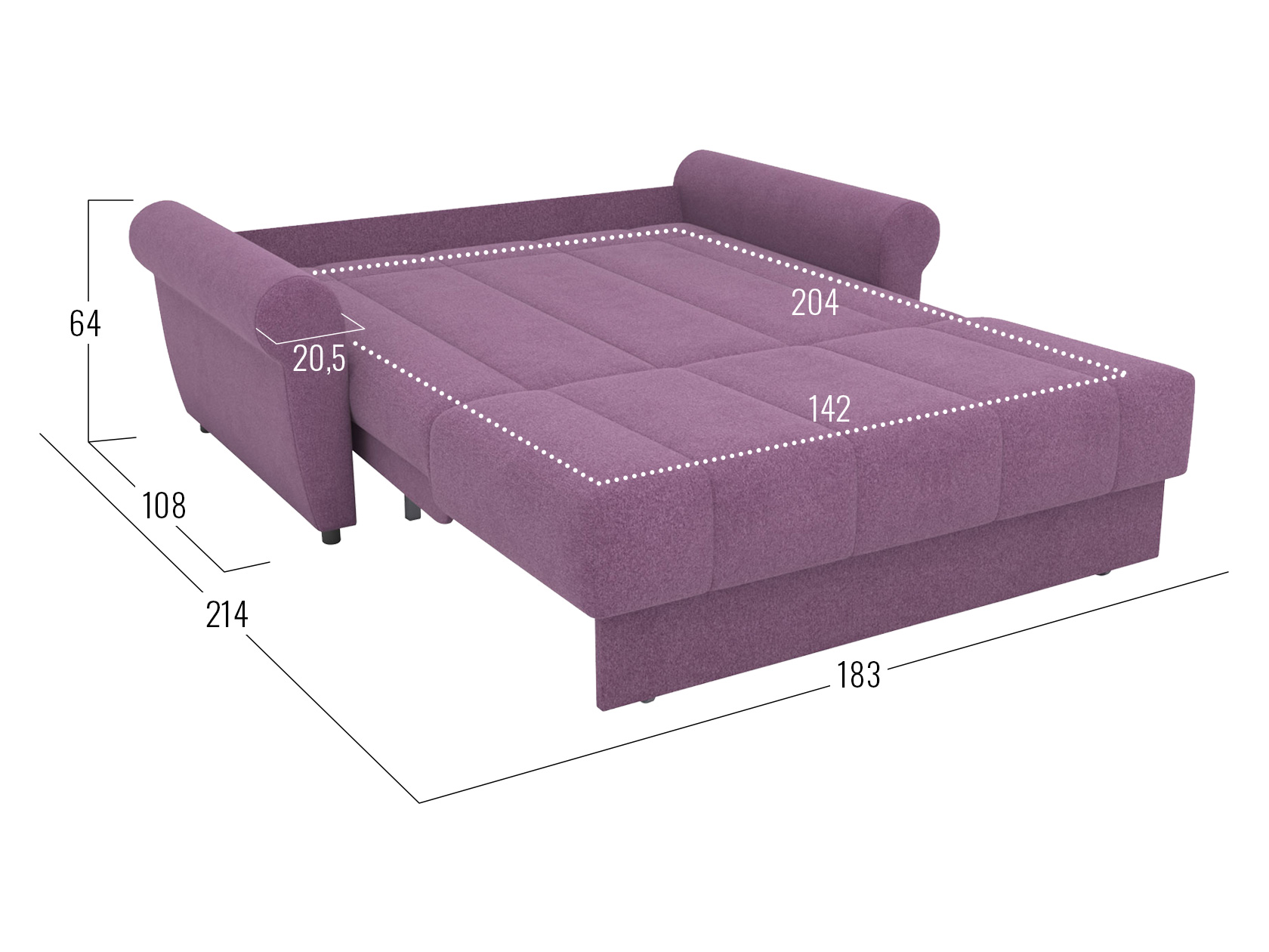 Раскладная модель легко превращается в просторное спальное место. Специальная планка обеспечивает защиту от соприкосновения со стеной, когда диван разложен. Металлокаркас гарантирует долговечность конструкции, а анатомическое основание отвечает за комфорт. Диван отлично подходит для ежедневного сна. Привлекательный дизайн подлокотников и декоративная строчка дополнят интерьер гостиной или спальни уютными деталями. Съемный чехол упрощает уход за обивкой.
