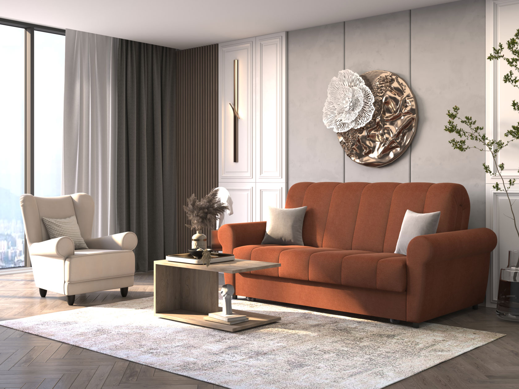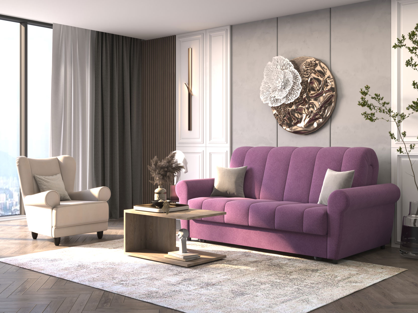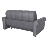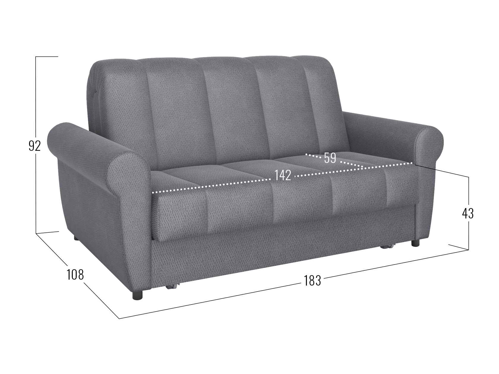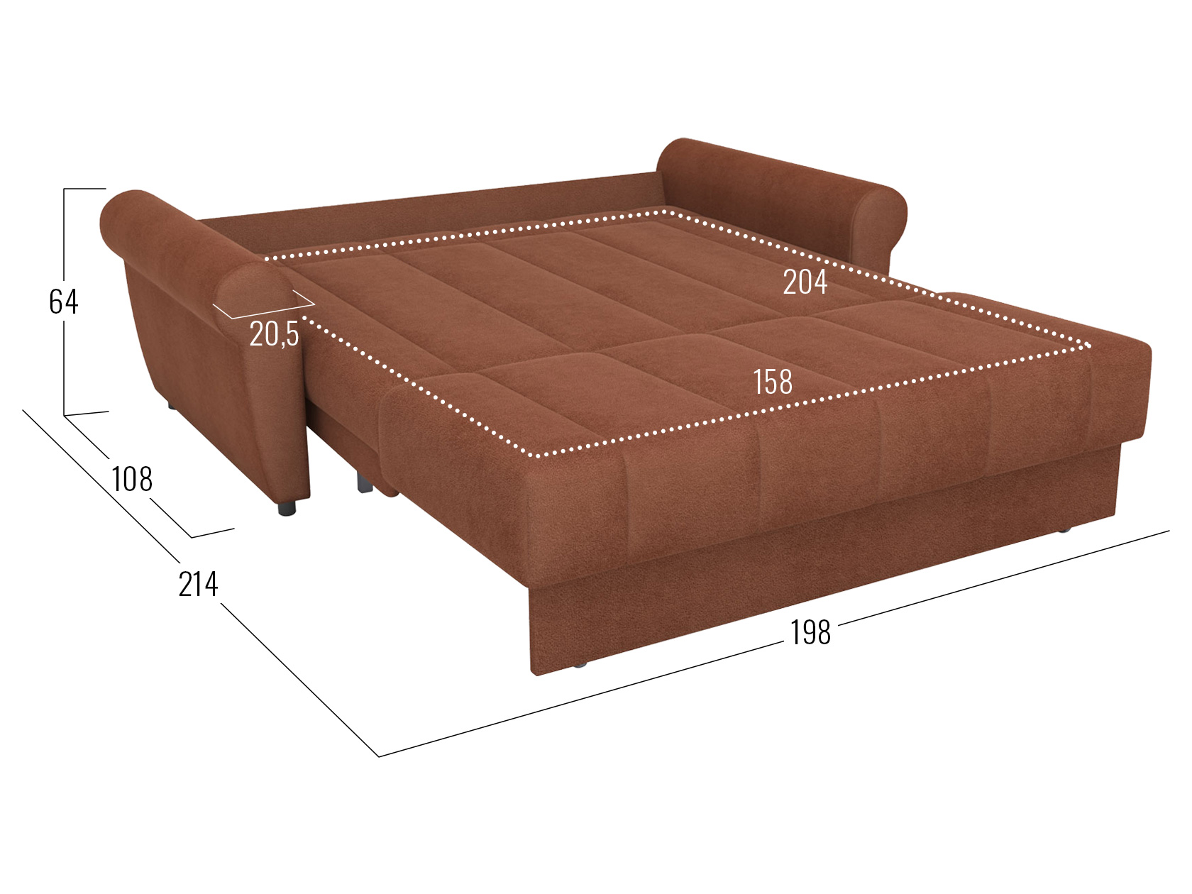Раскладная модель легко превращается в просторное спальное место. Специальная планка обеспечивает защиту от соприкосновения со стеной, когда диван разложен. Металлокаркас гарантирует долговечность конструкции, а анатомическое основание отвечает за комфорт. Диван отлично подходит для ежедневного сна. Привлекательный дизайн подлокотников и декоративная строчка дополнят интерьер гостиной или спальни уютными деталями. Съемный чехол упрощает уход за обивкой.
