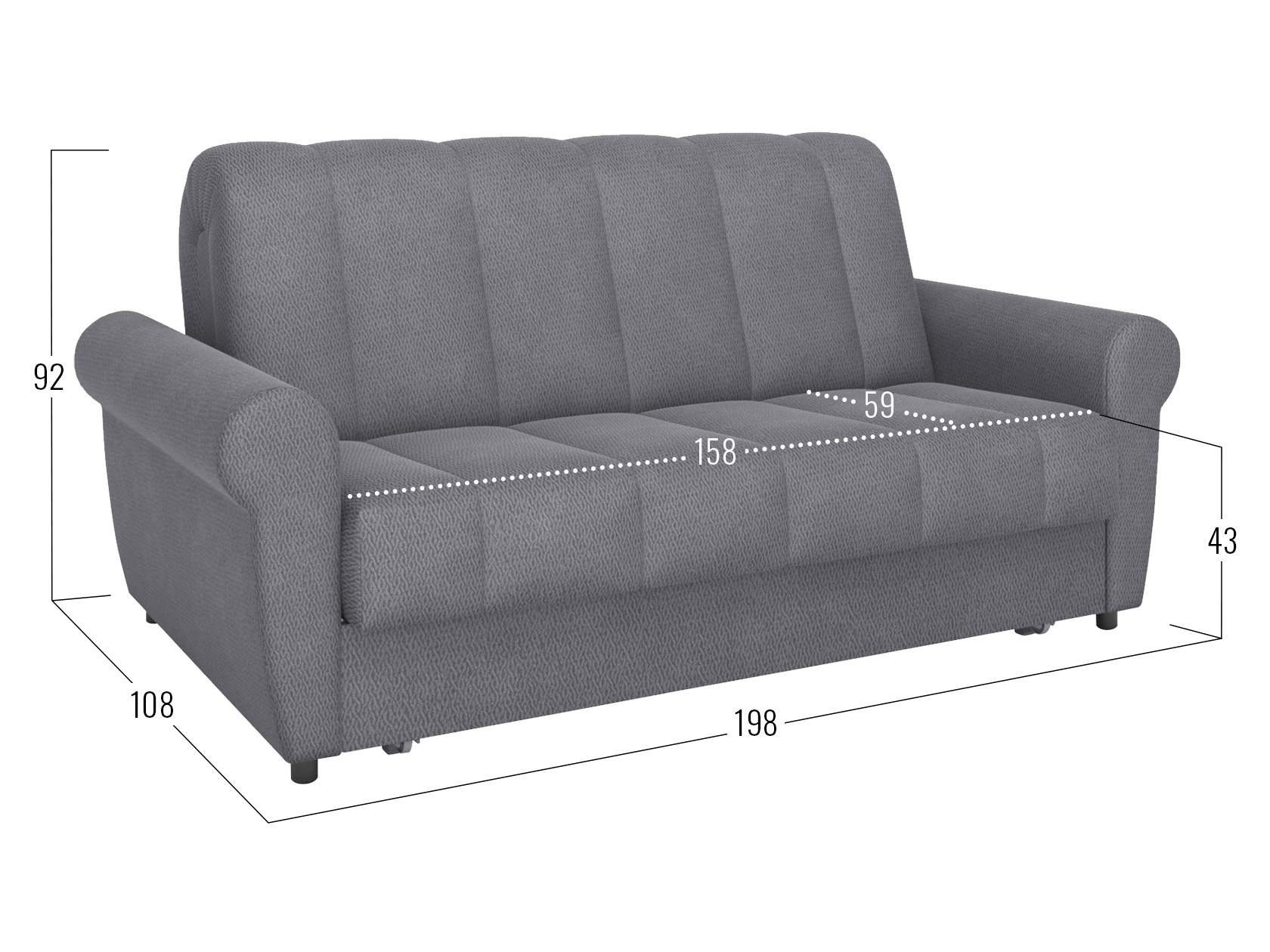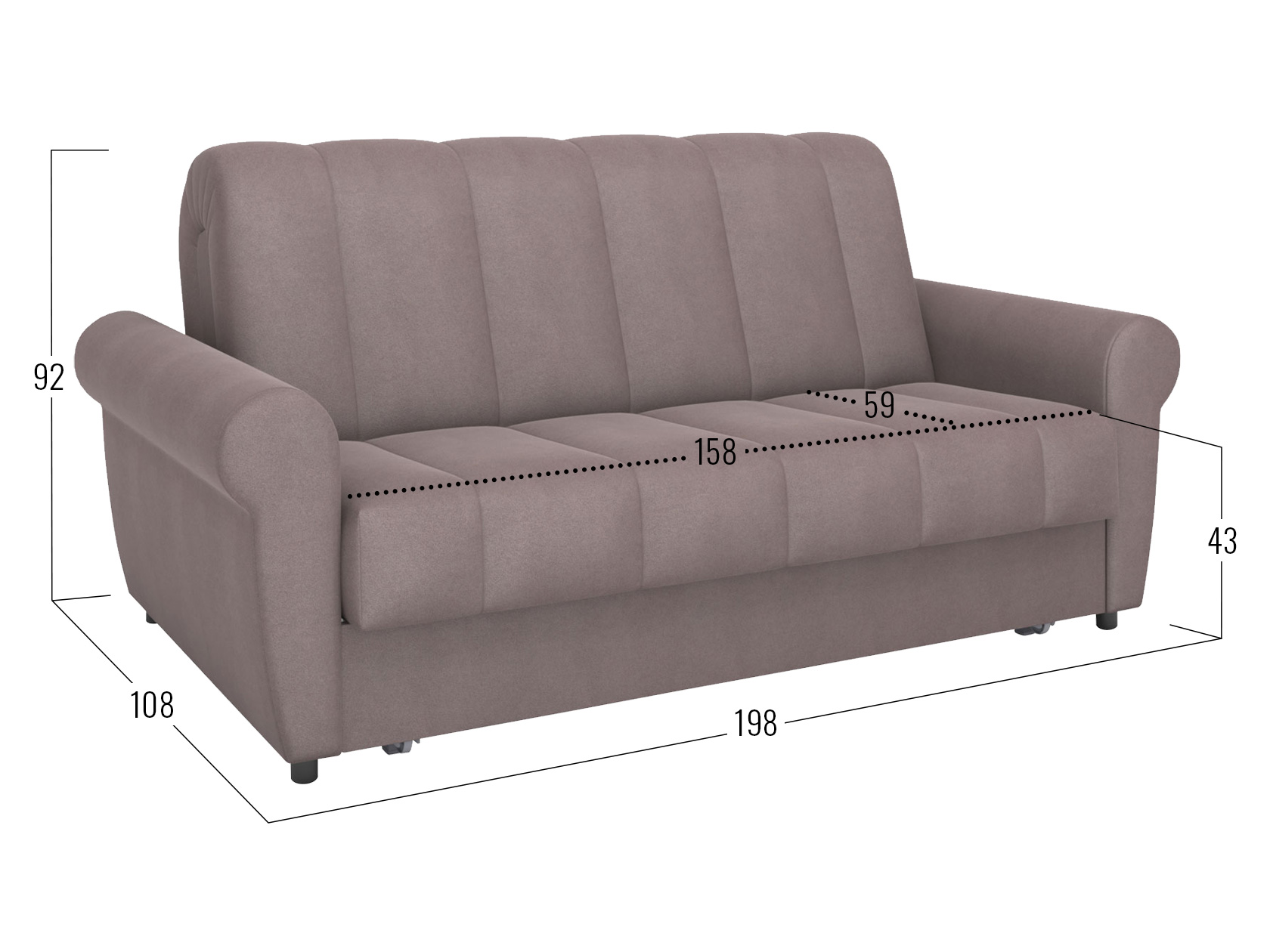 Посадочное место (ВхШхГ): 43 х 142 / 158 х 59 см.