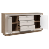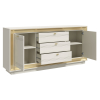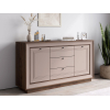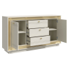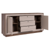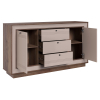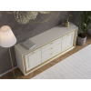 Разнообразие отделений позволяет хранить различные вещи: от белья и одежды до важных документов и книг. Модель можно использовать также в качестве тумбы для широкоформатного телевизора и мультимедиа-системы. Элегантная фурнитура и изящные линии фрезеровки создают запоминающийся облик мебели.