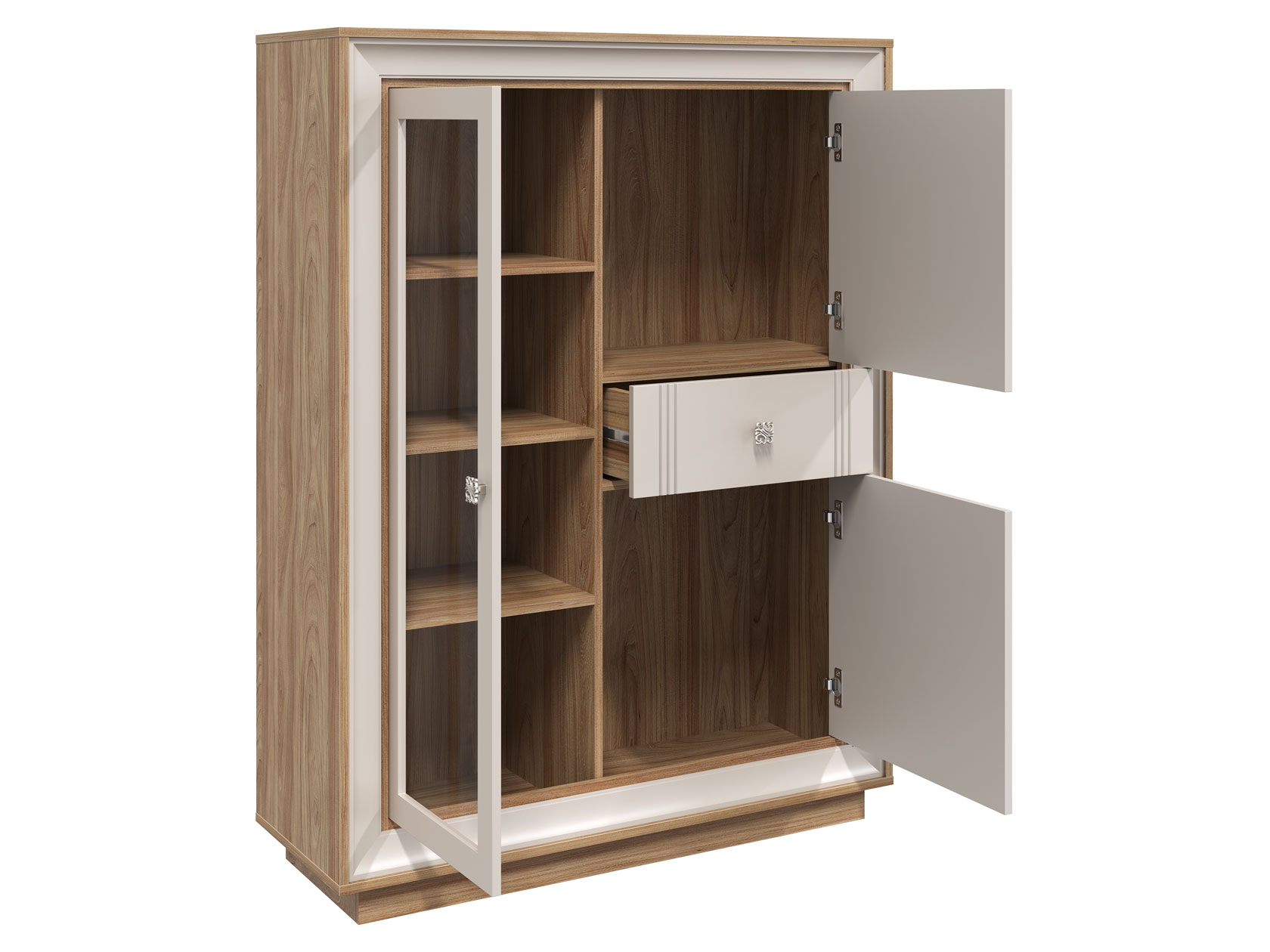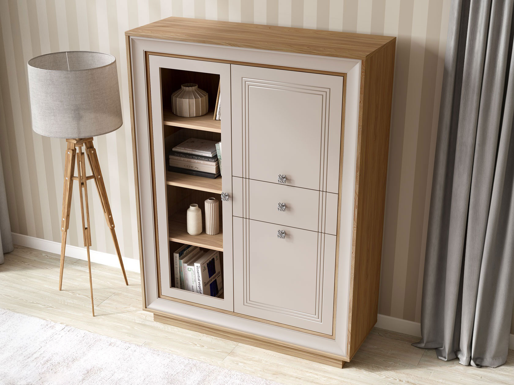 Комбинированное наполнение поможет удобно распределить разные категории вещей. За стеклянной дверцей будут эффектно смотреться домашняя библиотека или коллекция посуды. В выдвижном ящике легко поместятся полезные мелочи, а распашные фасады удачно скроют личные вещи и аксессуары.