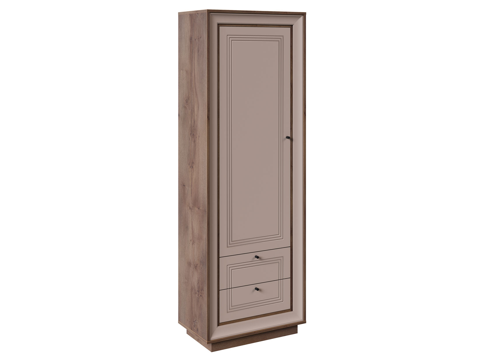 Модель позволяет разместить на полках белье и повседневные предметы гардероба, а в выдвижных ящиках — аксессуары и прочие мелочи. Рамочные фасады и изящная фрезеровка сочетаются с эстетичной фурнитурой, превращая мебель в украшение любого интерьера.