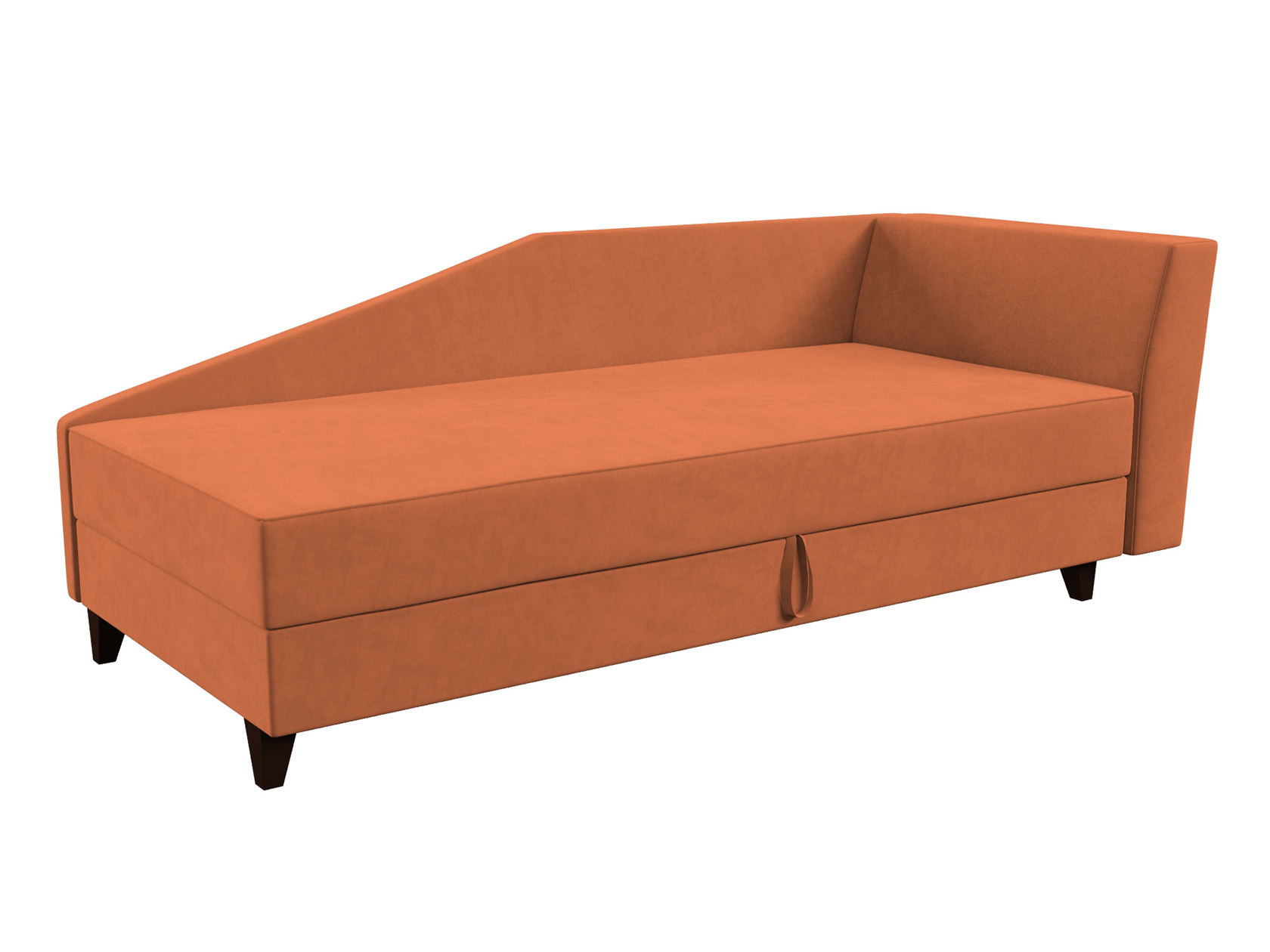 Модель можно использовать с целью зонирования пространства или комбинировать с другой мебелью. Необычный силуэт и небольшие ножки создают компактный и визуально легкий облик. Мягкая и приятная на ощупь обивка дарит комфортные ощущения, а короб для белья позволяет разместить необходимые вещи внутри.