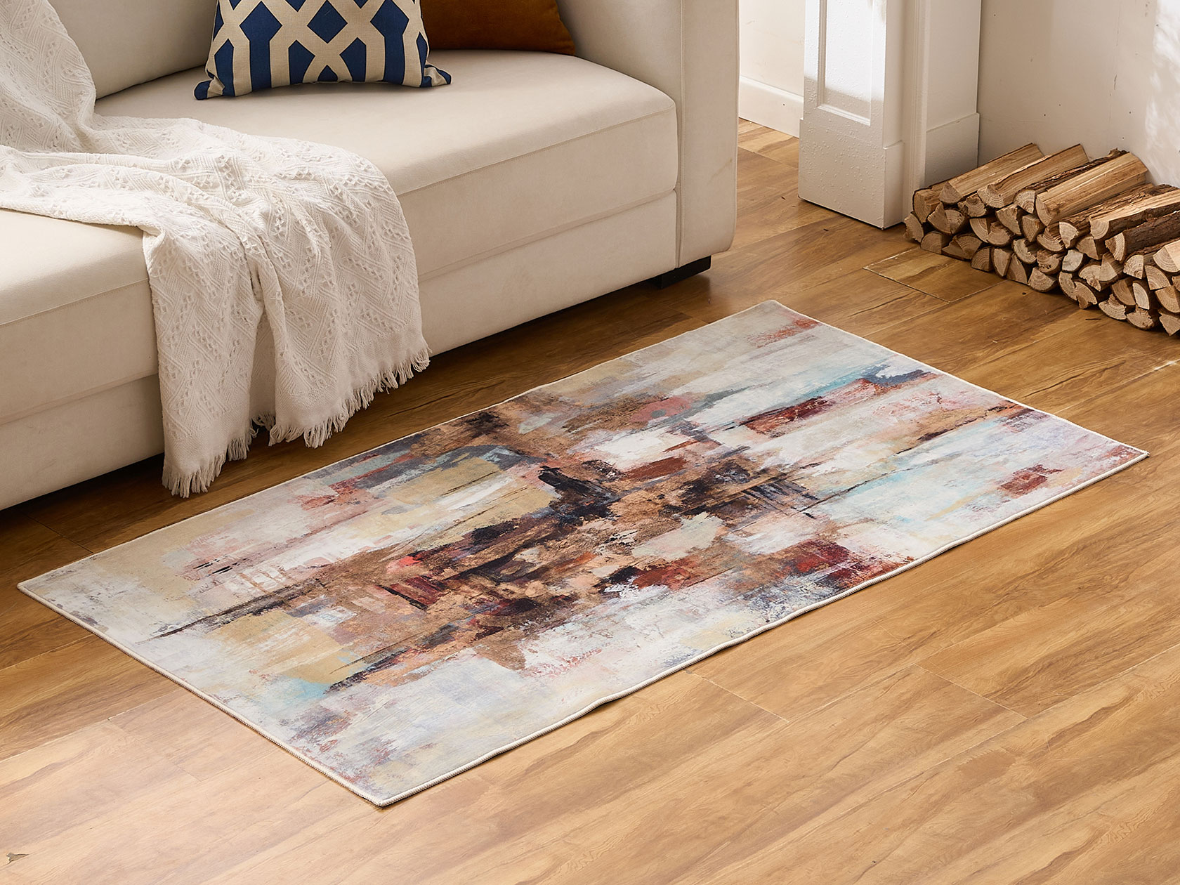 Короткий ворс практичен, легко очищается от пыли и пятен. Мягкое, но прочное волокно обеспечивает тактильно приятные ощущения и создает атмосферу домашнего уюта. Хлопковая подложка защищает напольное покрытие от повреждений.