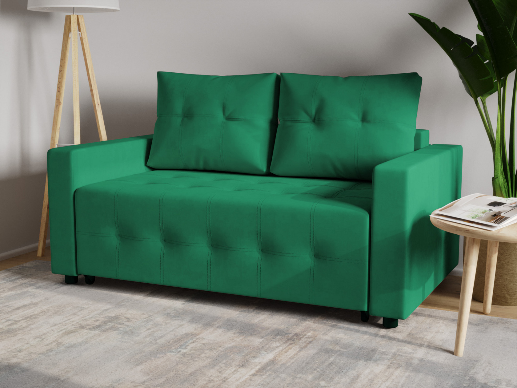 Приспинные подушки позволяют регулировать глубину посадки. Декоративная строчка на обивке выступает небольшим акцентом меблировки и подчеркивает лаконичный силуэт модели. Специальная планка защищает от контакта со стеной во время сна. Просторный ящик предоставляет дополнительную нишу для хранения одеял, пледов и постельных принадлежностей.