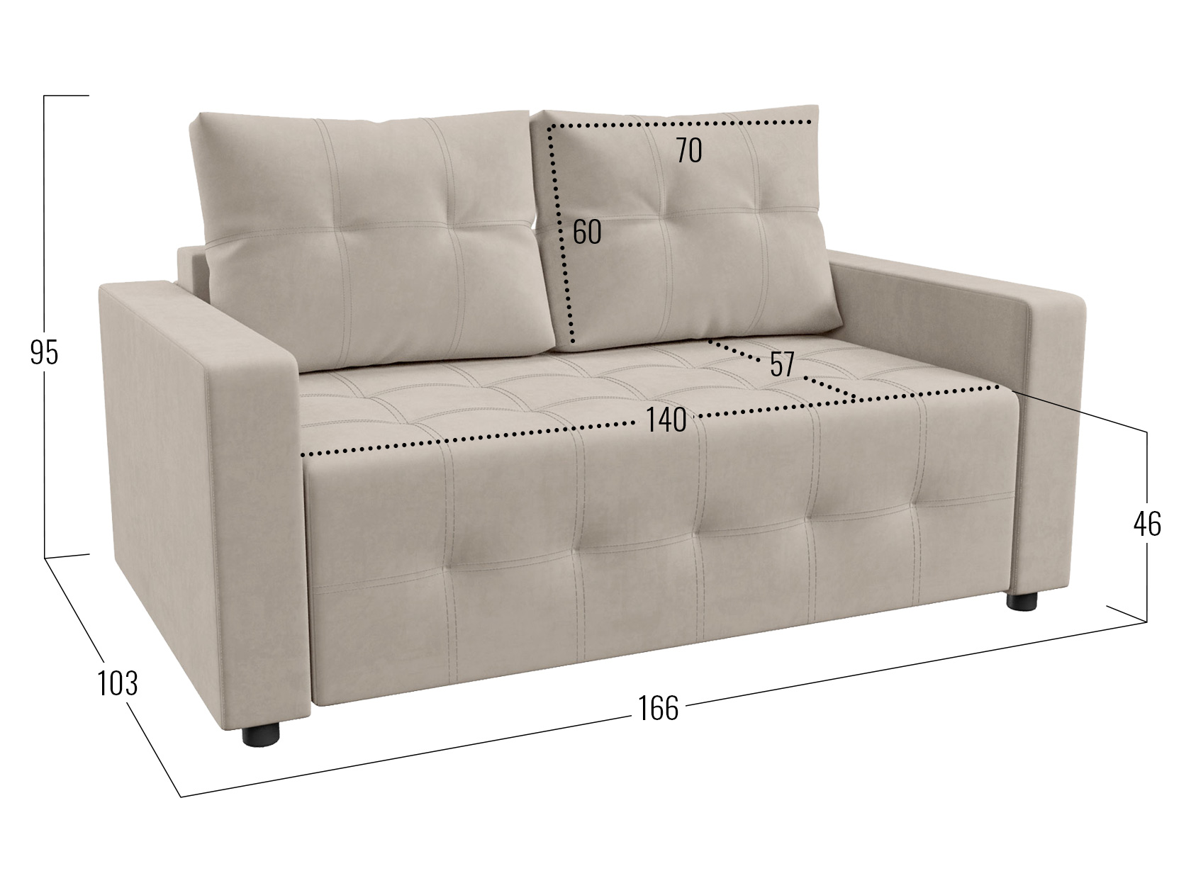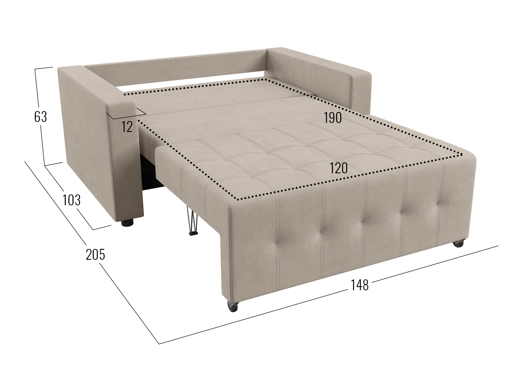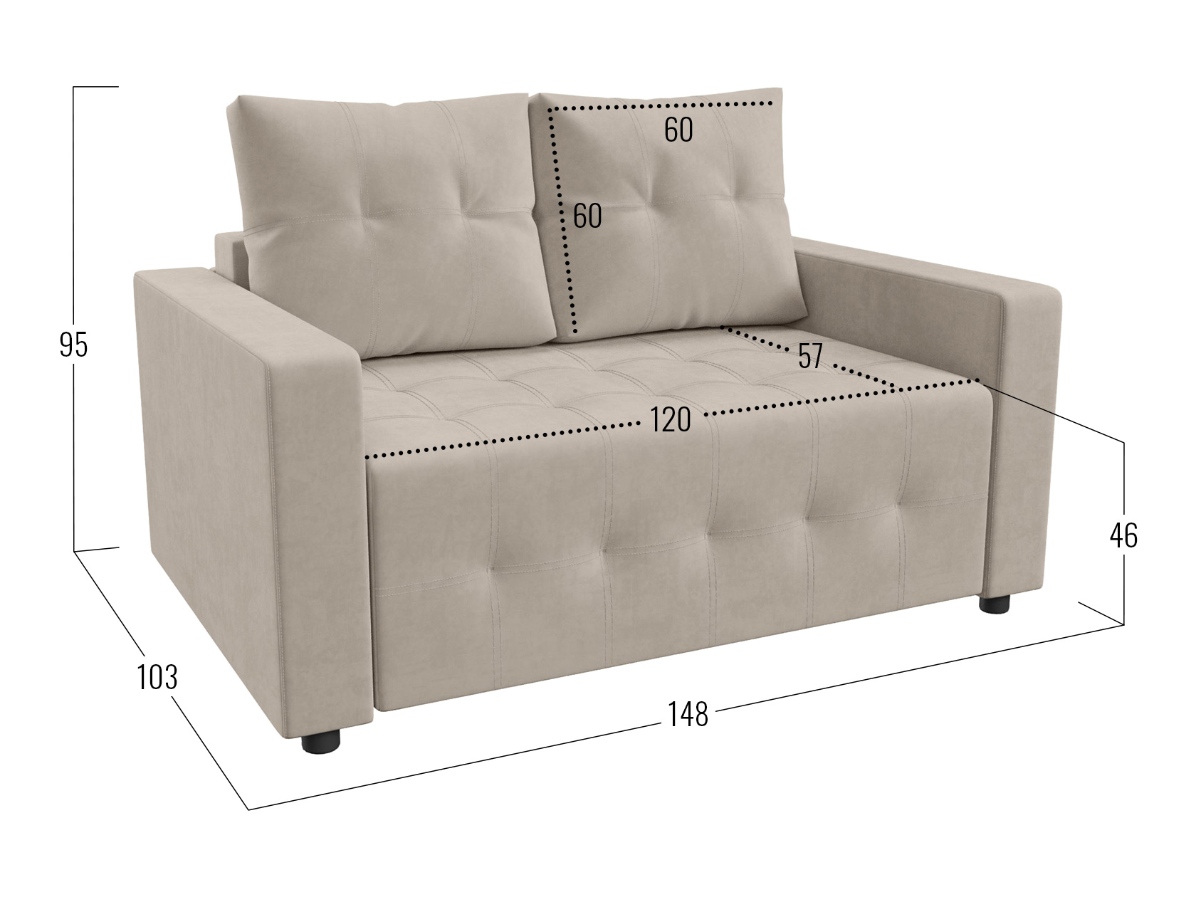 Посадочное место без подушек (ШхГ): 120 / 140 х 77 см.