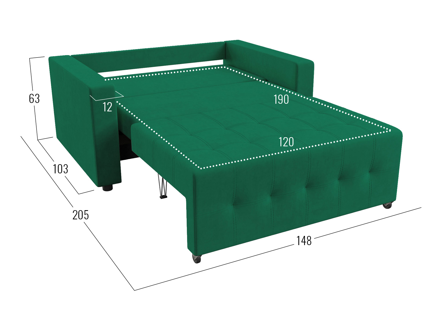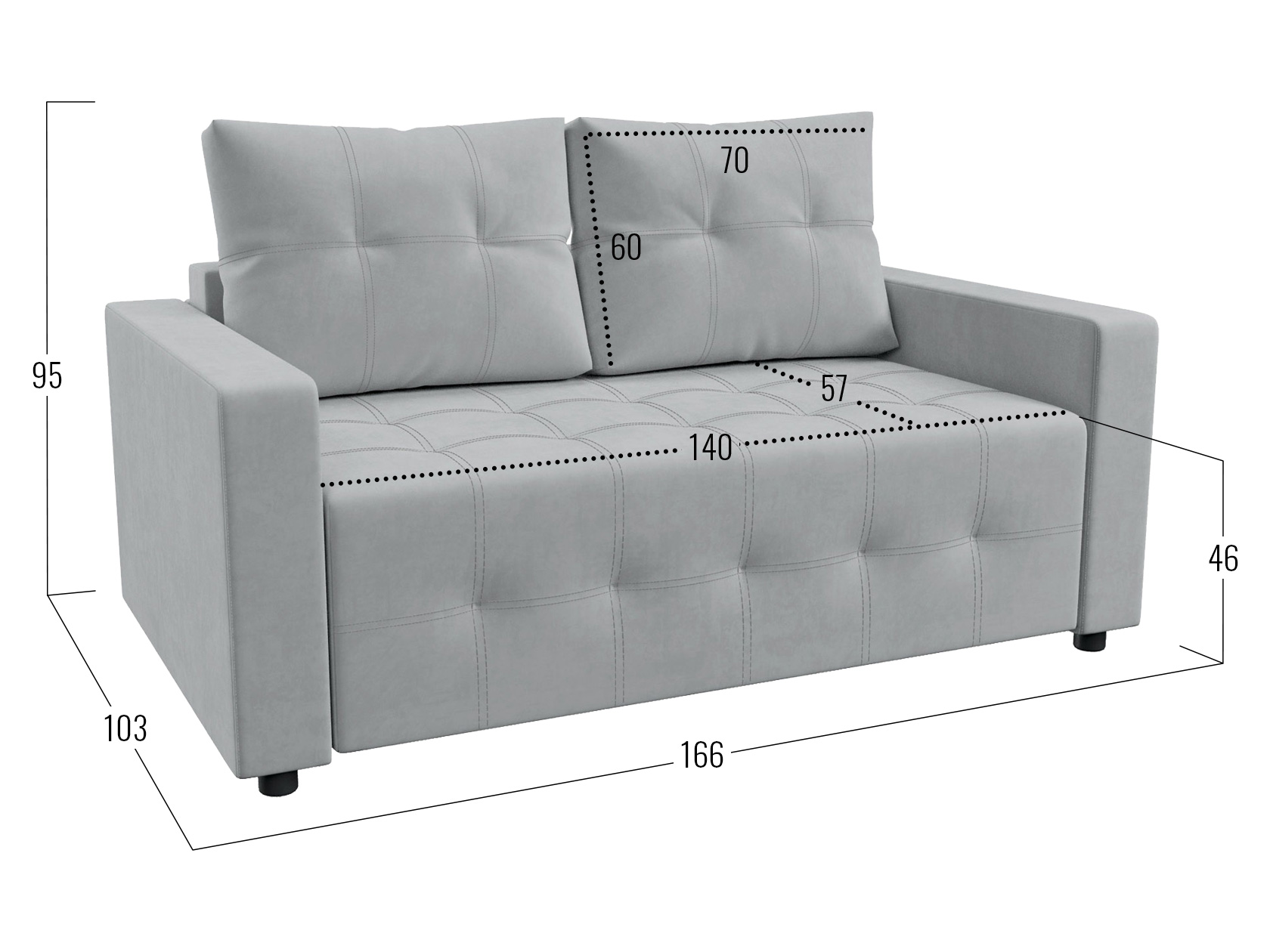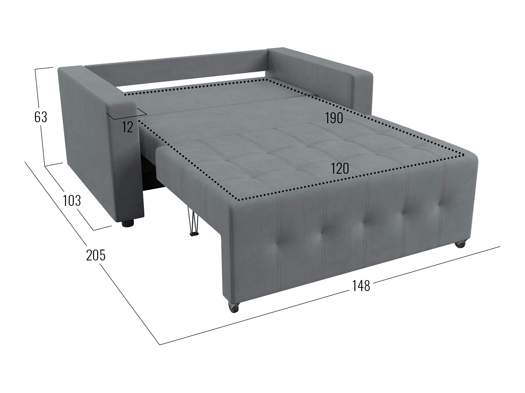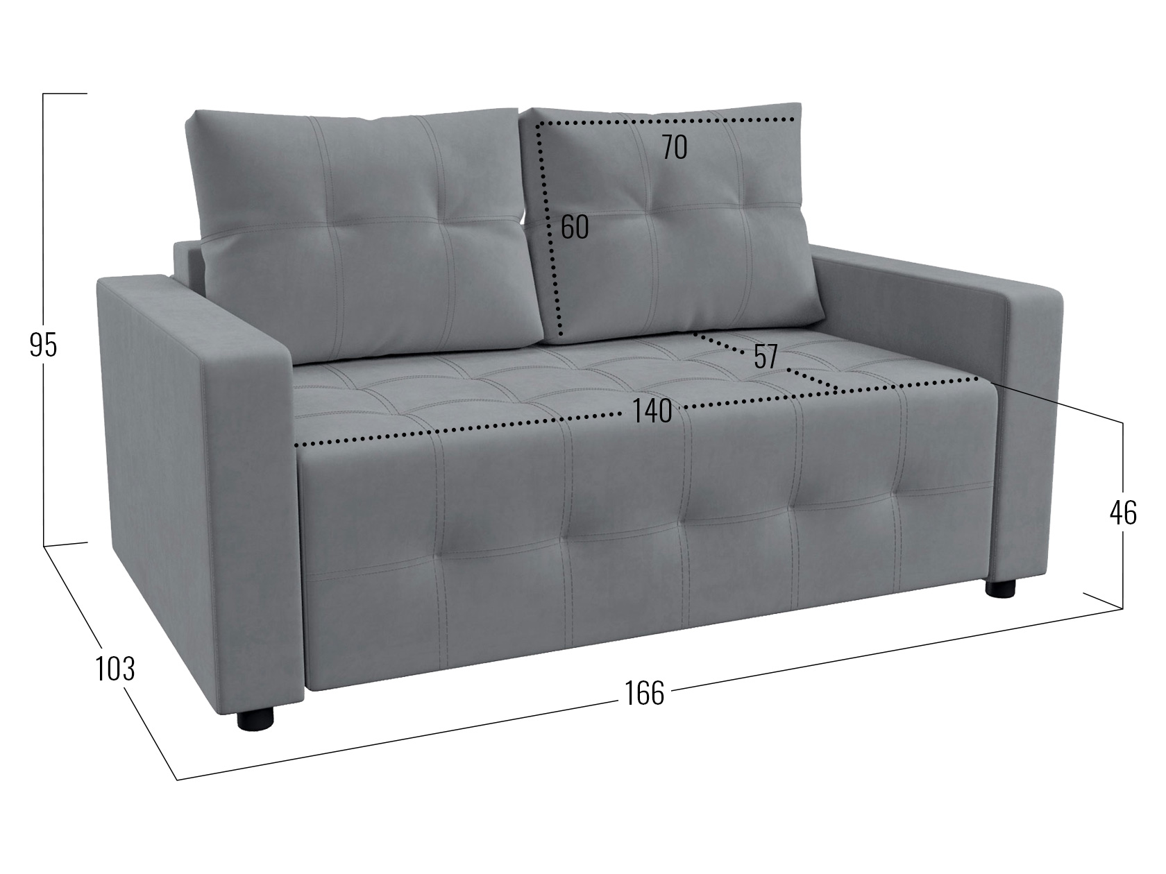 Посадочное место без подушек (ШхГ): 120 / 140 х 77 см.