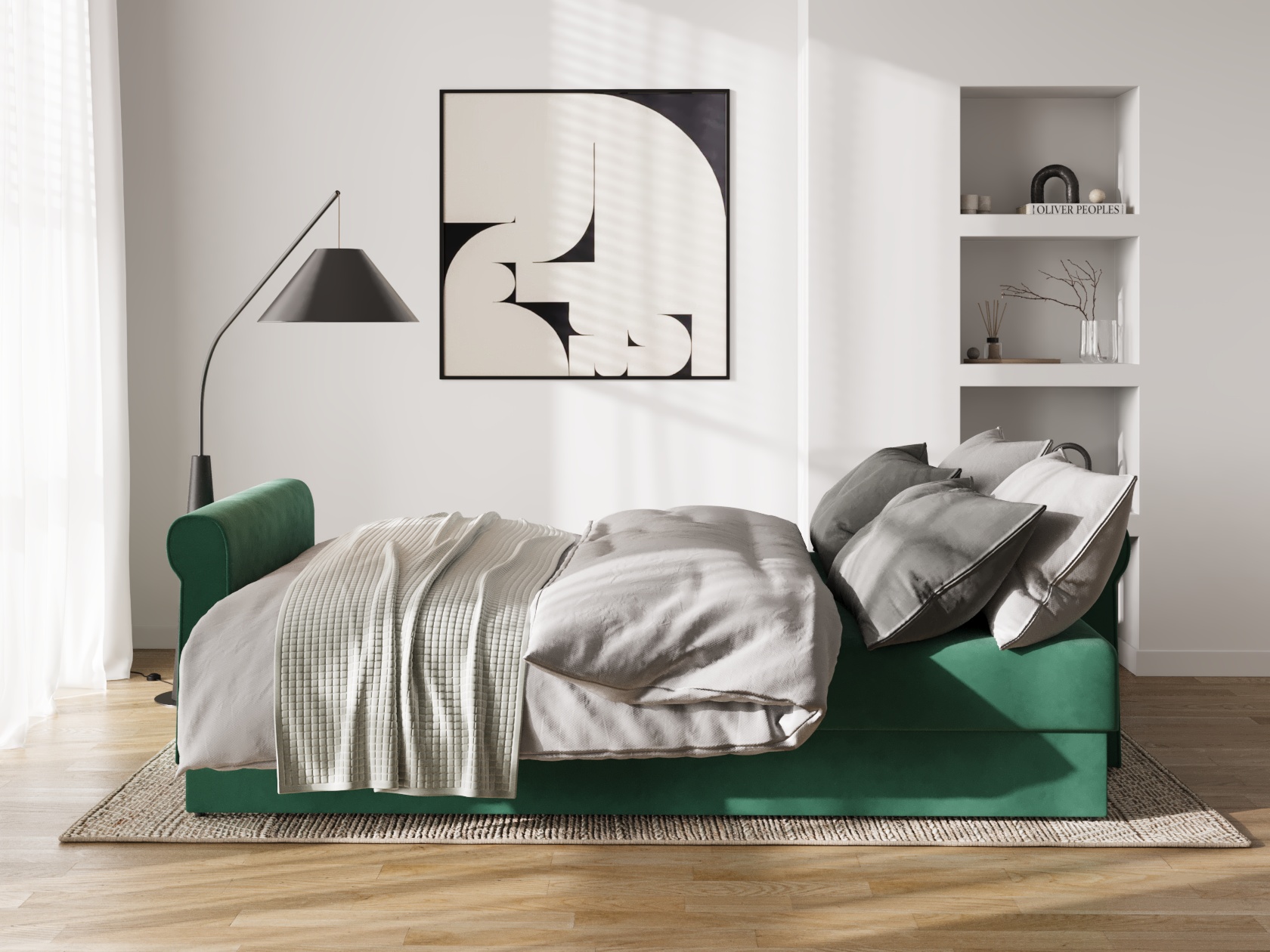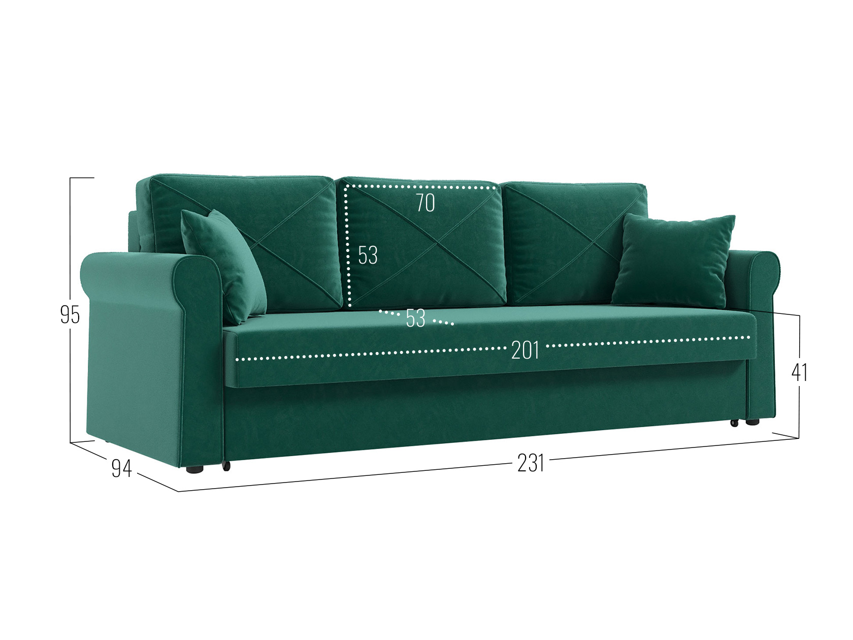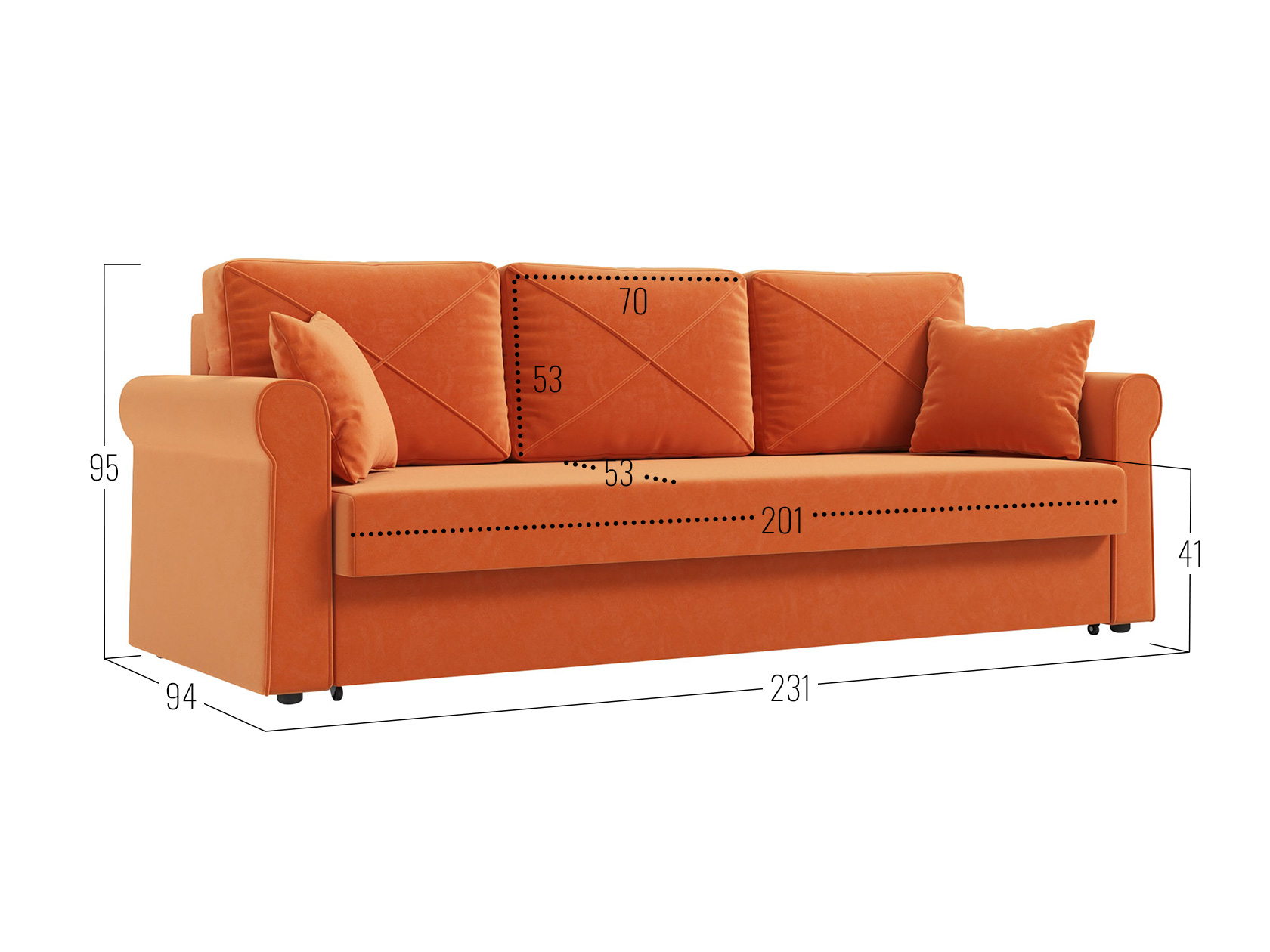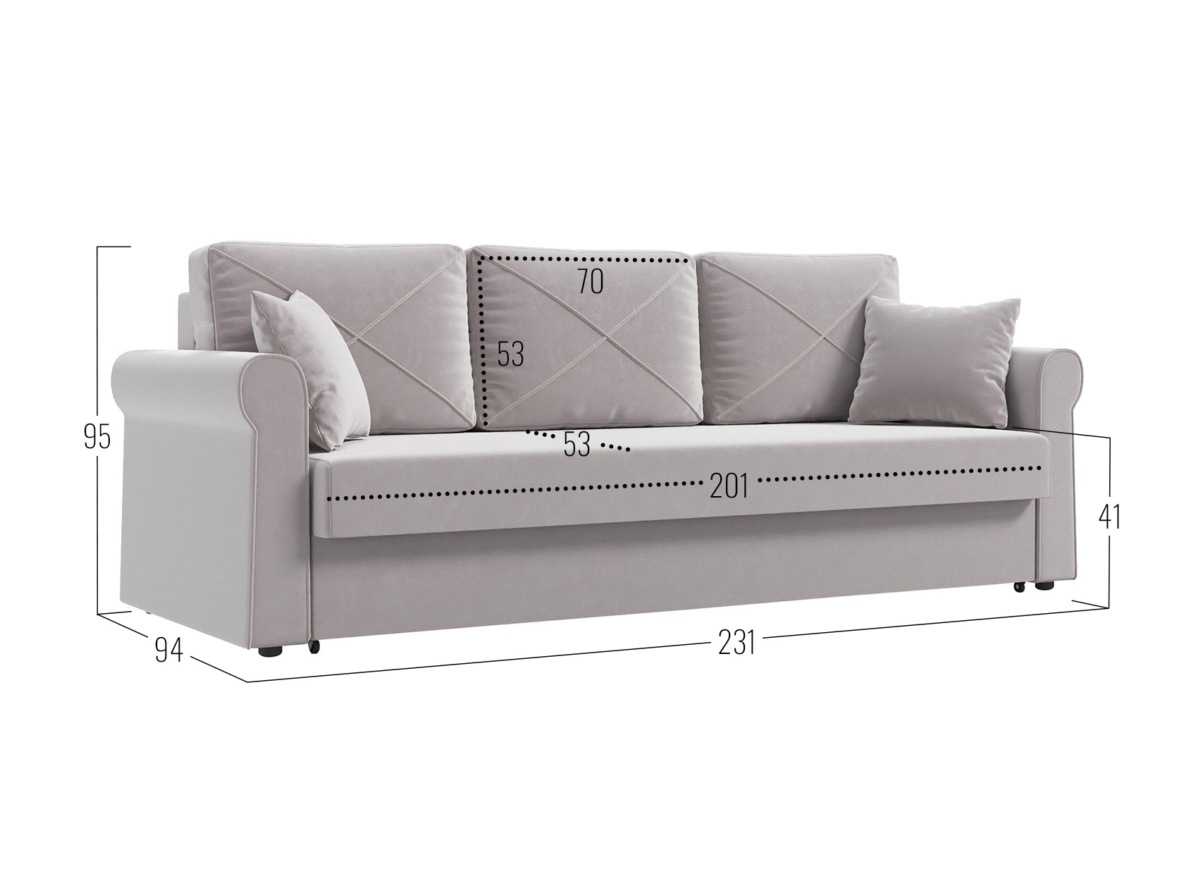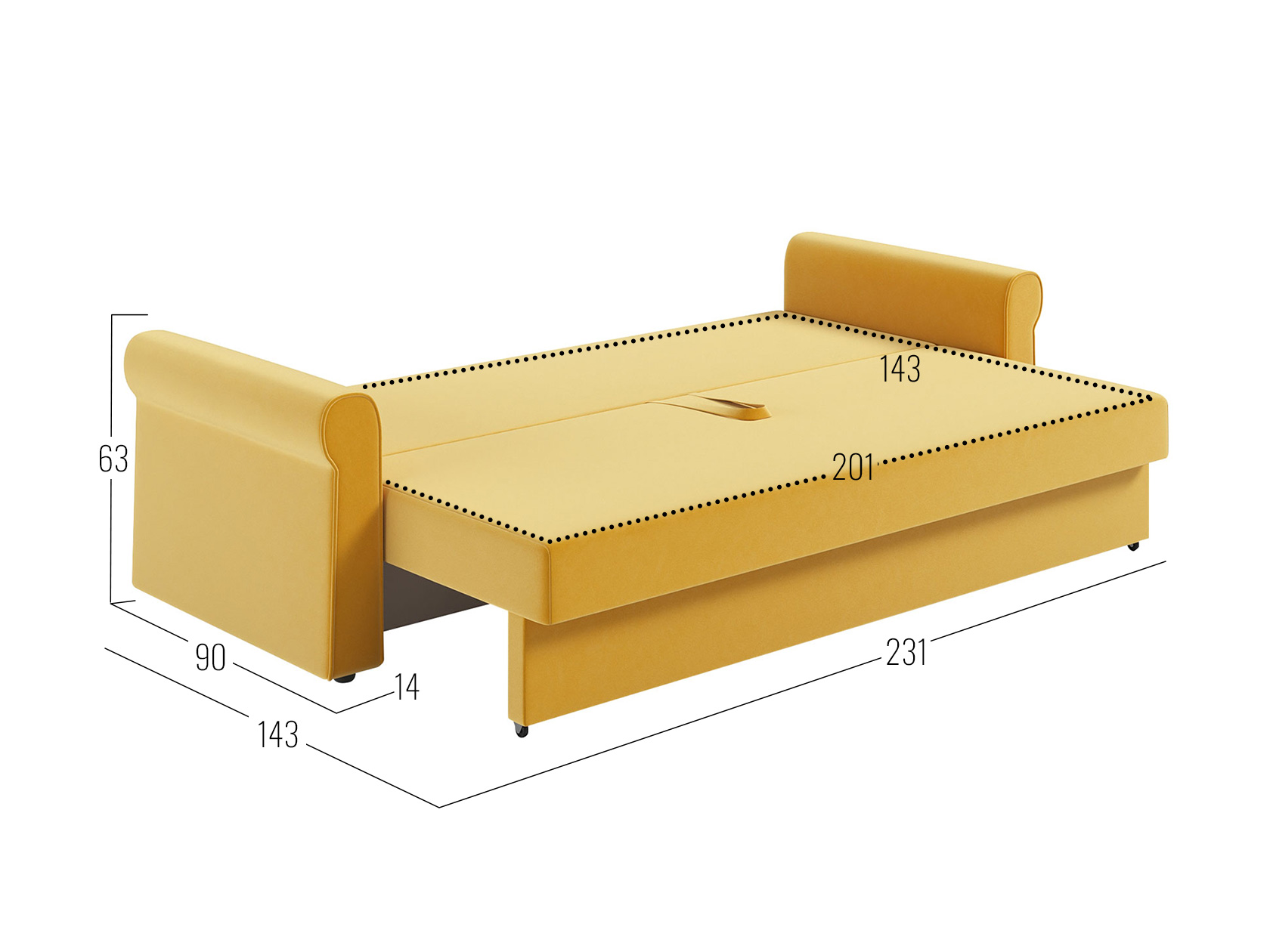 Прочный раскладной механизм подходит для ежедневной эксплуатации и быстро превращает диван в полноценную кровать. Двухсекционный бельевой короб предоставляет просторное место для хранения постельных принадлежностей. Спинка обита основной тканью, поэтому с помощью модели удобно зонировать комнату.